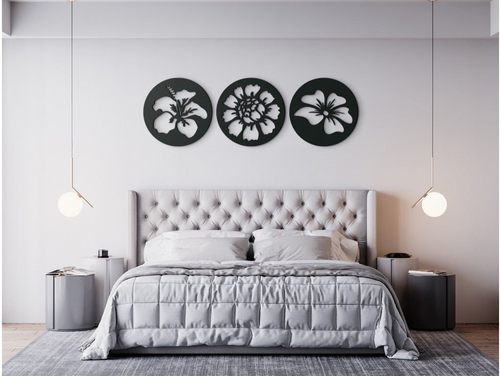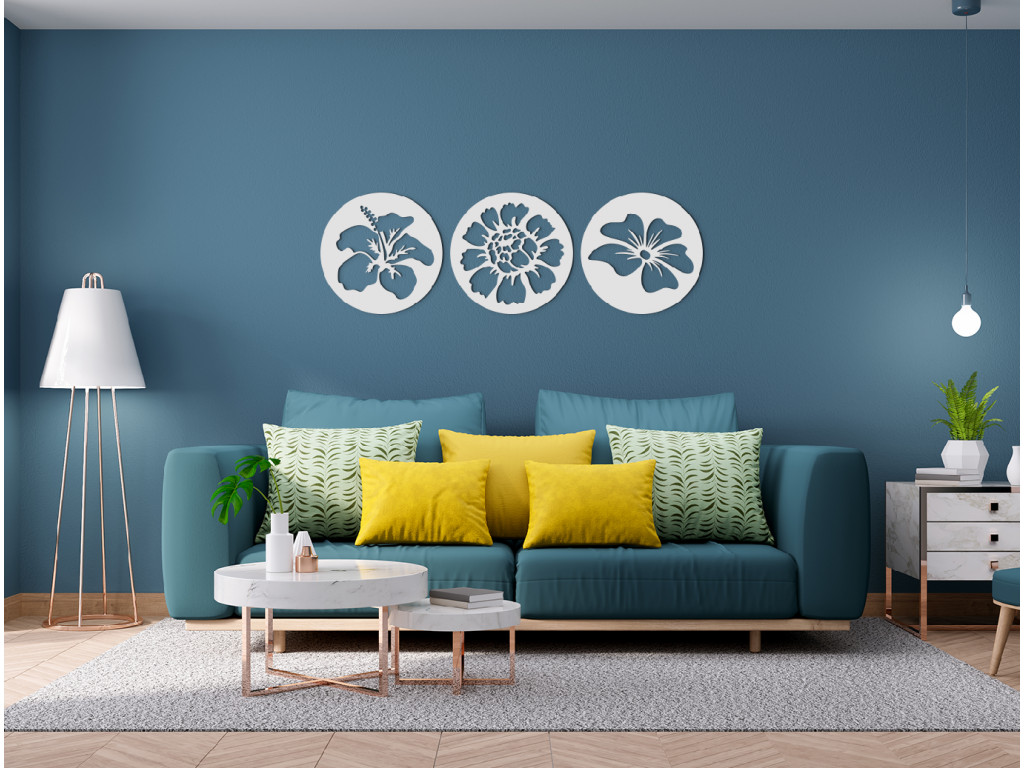 Drevený obraz Kvety poskladaný z 3 dielov. Tento vyrezávaný obraz sa skvele hodí do obývacej izby, kuchyne, chodby alebo predsiene. Okrúhle prevedenie obrazu a jemné detaily dodajú miestnosti teplo domova a príjemný vzhľad. Obraz na stene pôsobí 3D dojmom.