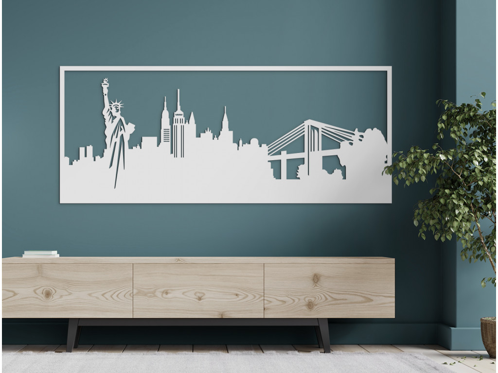Charakter moderného mesta a nášho dreveného obrazu tvoria neodmysliteľné mrakodrapy radiace sa medzi najvyššie v krajine a známe budovy rôznych architektonických štýlov. Medzi najznámejšie patria Empire State Building a Chrysler Building reprezentujúce umelecké hnutie Art Deco, Woolworth Building či bývalé World Trade Center. V itenerári turistov nesmie chýbať ani Broadway, Madison Square Garden, Greenwich Village, Washington Square Park, Rockefeller Center, Bronx Zoo či luxusná Fifth a Madison Avenue. Neodmysliteľnou súčasťou New Yorku je však Central Park a Times Square uprostred Manhattanu. Najznámejším symbolom metropoly a zároveň dominantou obrazu je Socha slobody týčia sa 93 m nad ostrovom Liberty Island. Širokú panorámu uzatvára silueta jedného z najstarších mostov v USA. Už od roku 1883 spája majestátny Brooklyn Bridge zavesený ponad rieku East River na oceľových lanách časti New York, Manhattan a Brooklyn.