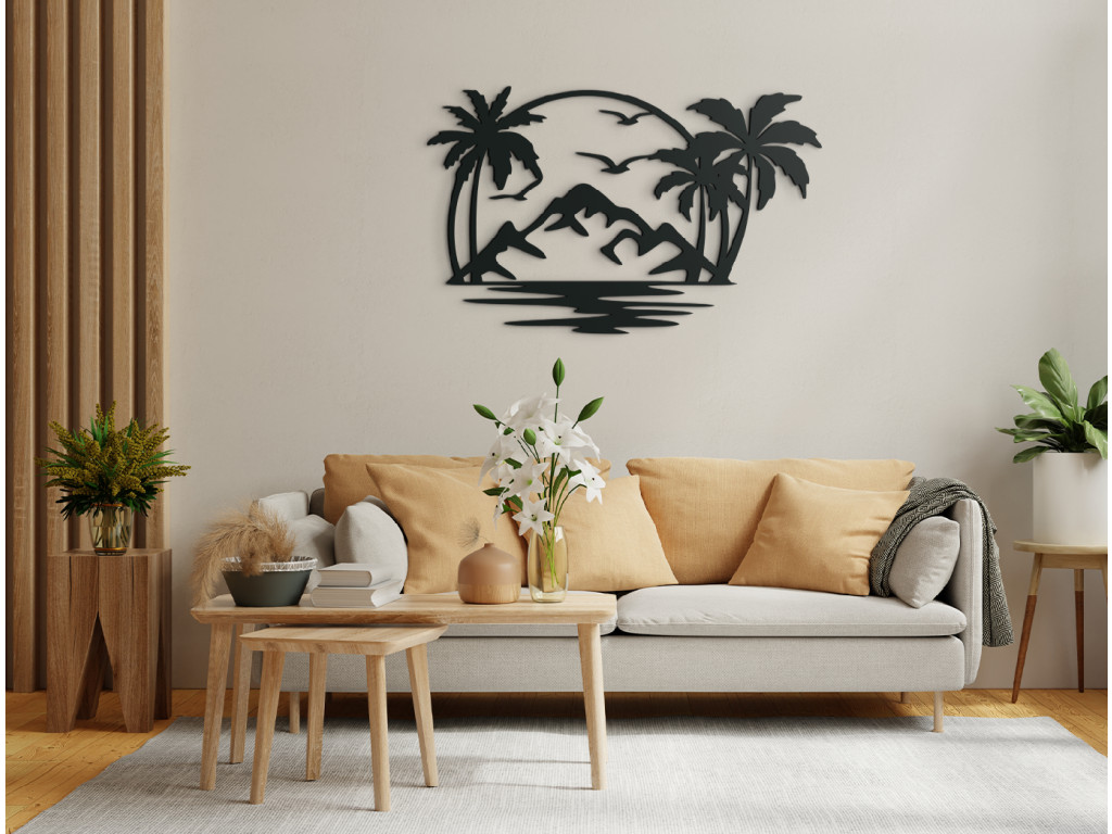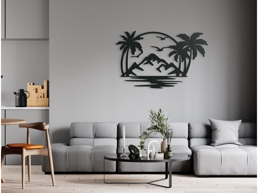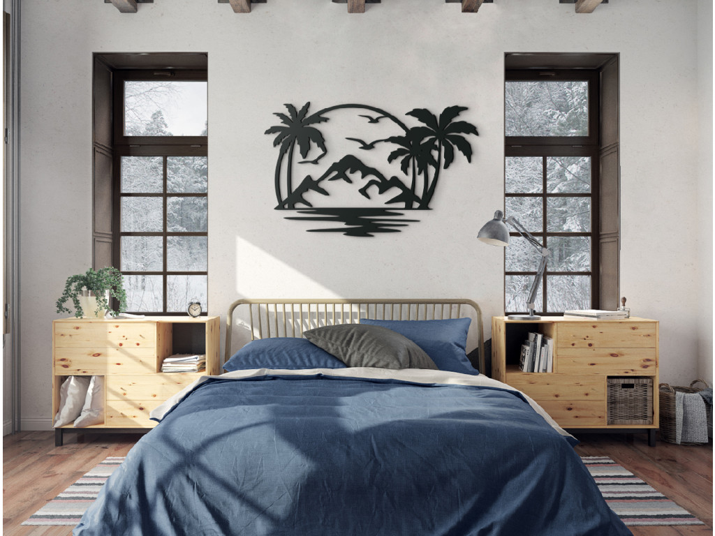 Drevený obraz Rajský ostrov s palmami, na ktorom sa nachádza more a exotické palmy. Jednoduchý dizajn z neho robí dekoráciu vhodnú do akejkoľvek izby. Obraz v minimalistickom dizajne je vyrobený z kvalitných materiálov. Vybrať si môžete z viacerých farebných prevedení.