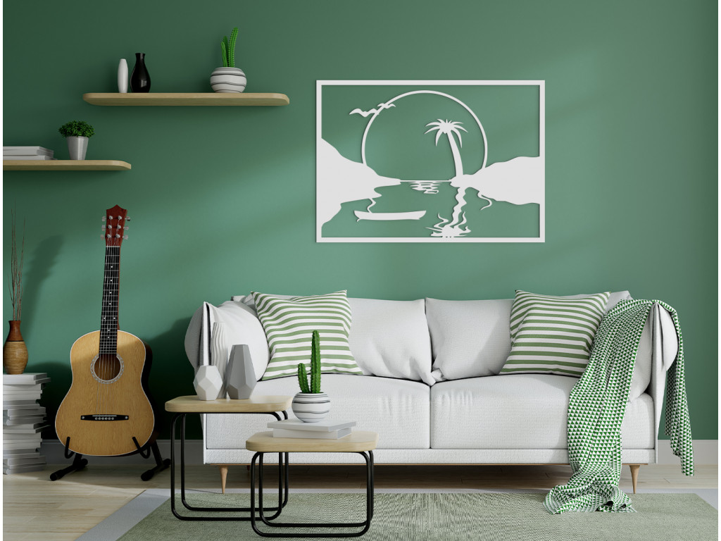 Nechajte sa voviesť do teplých krajín a do vášho interiéru preneste kúsok pohodovej atmosféry. Drevený obraz Západ slnka sa o takúto atmosféru postará. Sú na ňom vyobrazené palmy, za ktorými zapadá veľké slnko. Celý obraz vytvára príjemnú atmosféru.