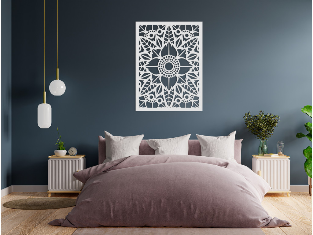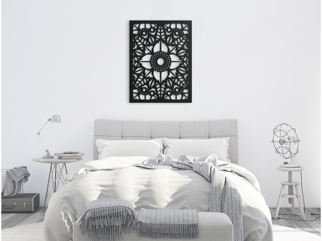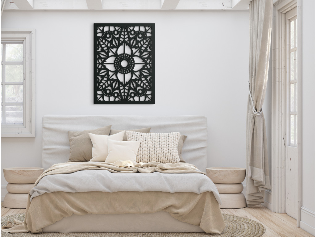 Zútulnite si domácnosť s dreveným panelom na stenu Magický kvet. Dekoráciu tvorí centrálne umiestnený kvet pravidelného tvaru s kruhovito usporiadanými okvetnými lupienkami a lístkami rozbiehajúcimi sa až k rámu. Môžete si vybrať z viacerých farebných vyhotovení, takže ho ľahko zladíte k rôznemu nábytku.
