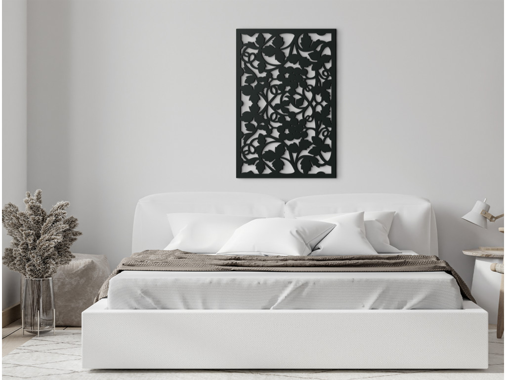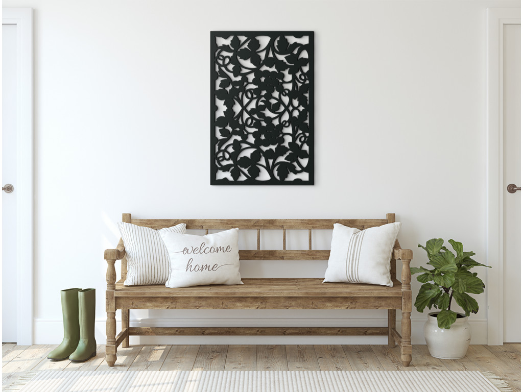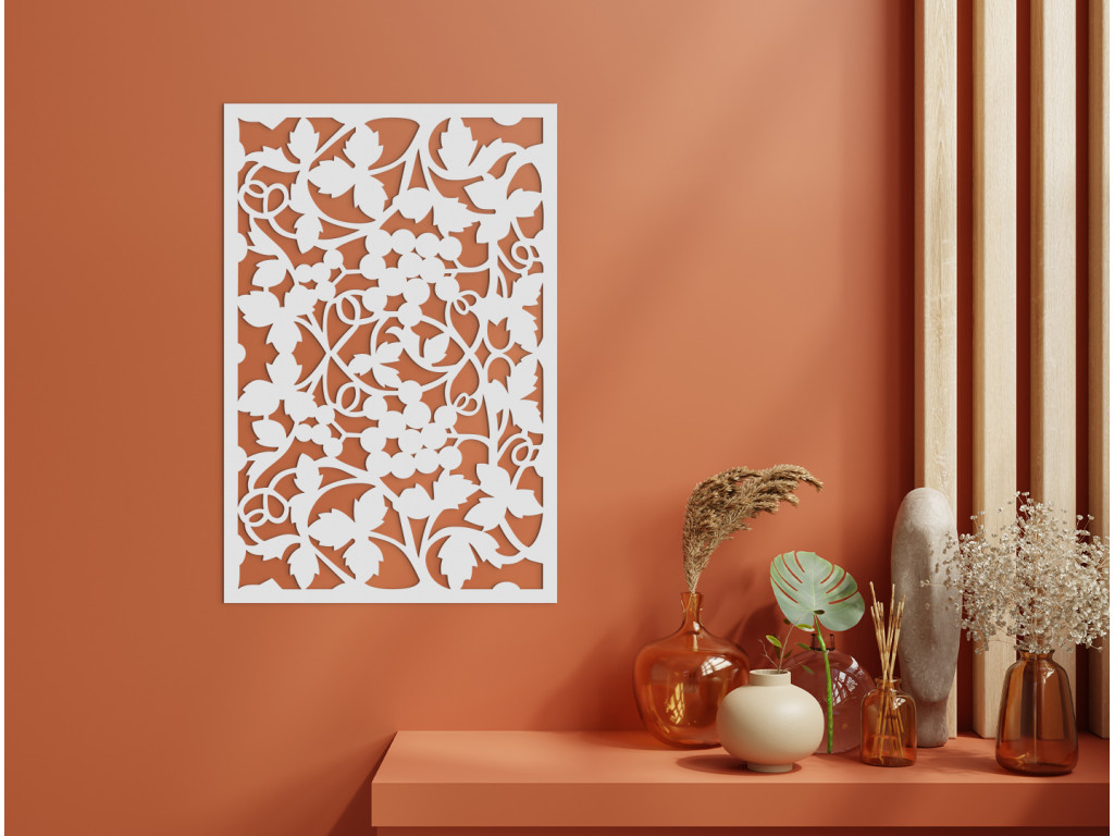 Dodajte vášmu interiéru nový vzhľad vďaka drevenej dekorácií s motívom hrozna. Univerzálny dekoratívny motív dreveného panelu na stenu dodá novú tvár obývačke, spálni či kancelárii. Listy sú doplnené o strapce hrozna pravidelného tvaru, takže svojím vzhľadom pripomínajú umelecké vitráže.