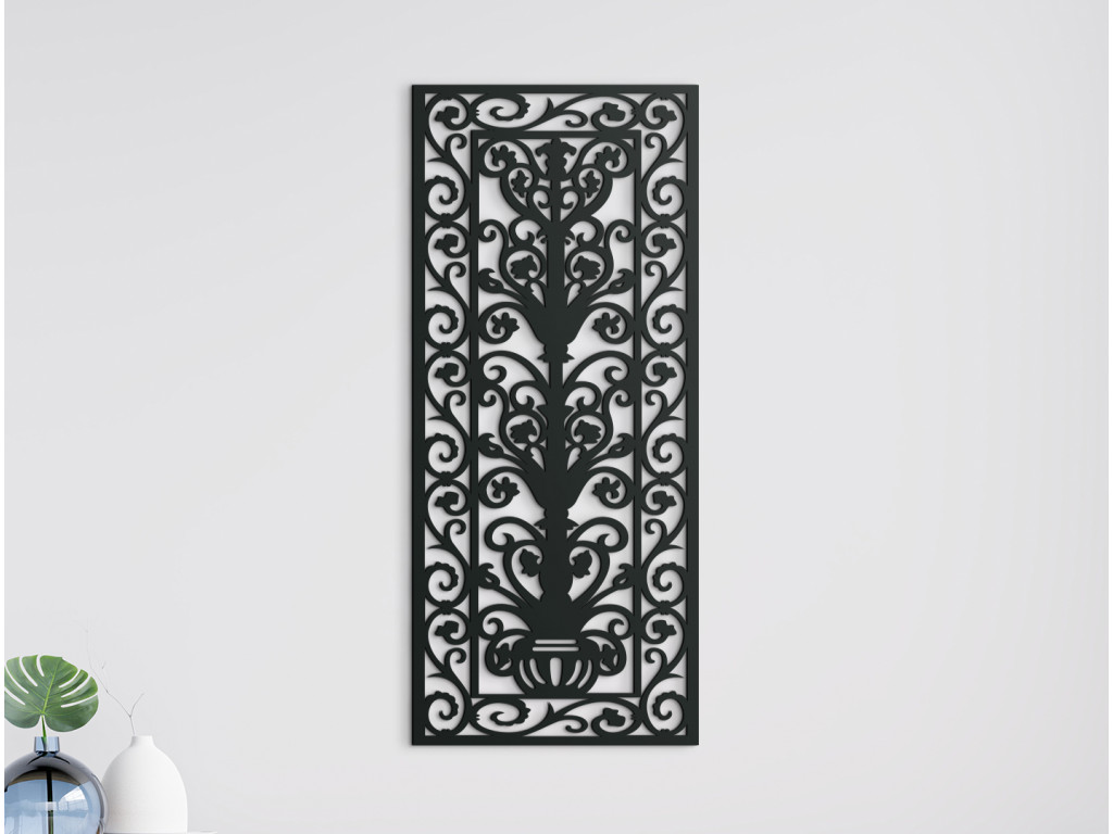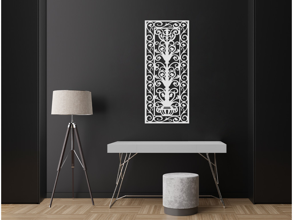 Drevený panel na stenu Rajská brána svojím dekorom skutočne pripomína bránu do raja. Rozlične formované ornamenty sa zároveň ponášajú na umelecky cizelovanú kovanú bránu do paláca alebo rozprávkového zámku. Nájdite mu miesto na prázdnej stene v obývačke, spálni či kancelárii a dodajte týmto miestnostiam nový, neopozeraný vzhľad.