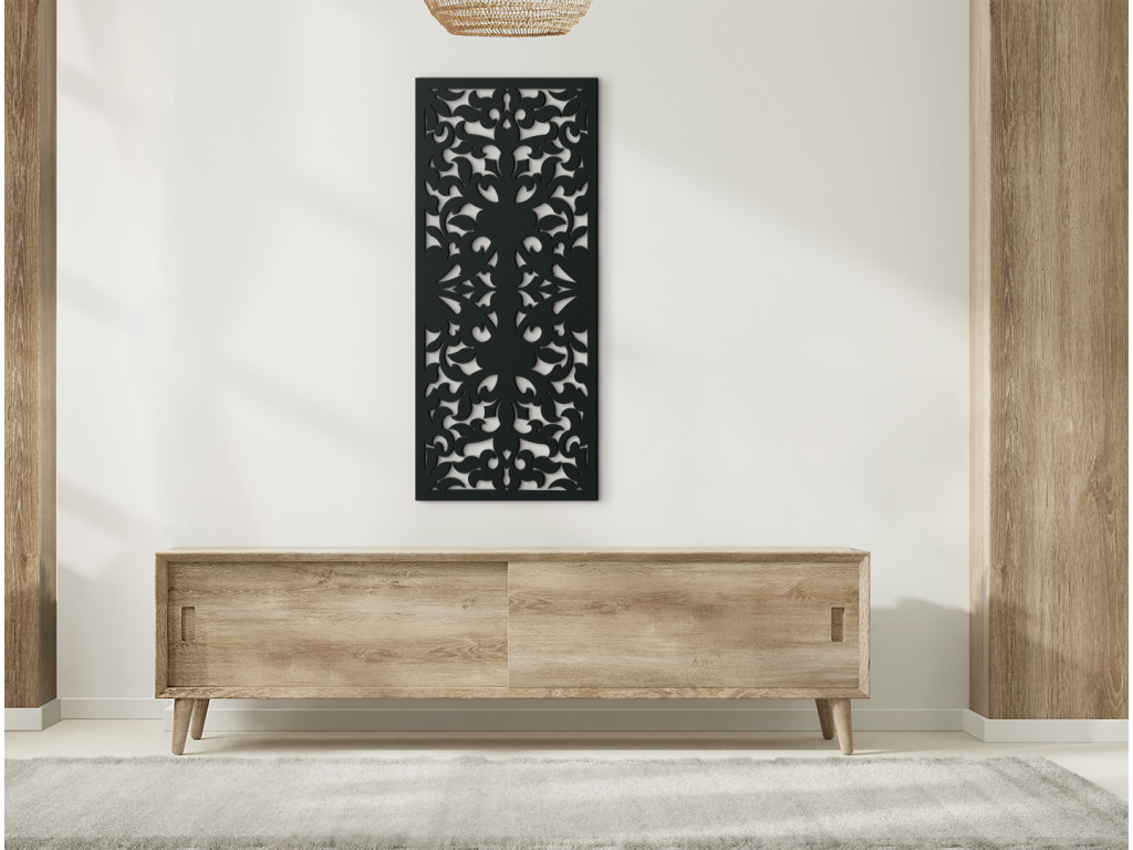 Hľadáte dekoráciu, ktorá oživí steny v interiéri? Drevený panel na stenu s krásnymi ornamentmi vnesie do interiéru elegantný dizajn. Je už len na vás, či sa rozhodnete zavesiť ho na výšku alebo na šírku. Vďaka rozličným farebným vyhotoveniam perfektne vynikne na bielej i farebnej stene.
