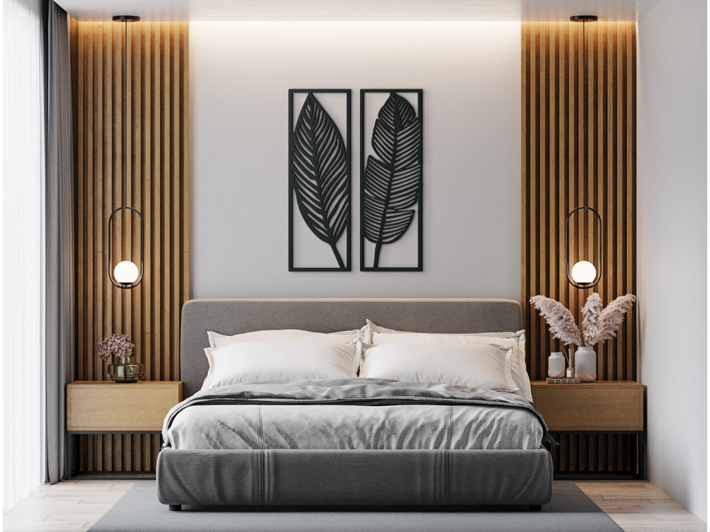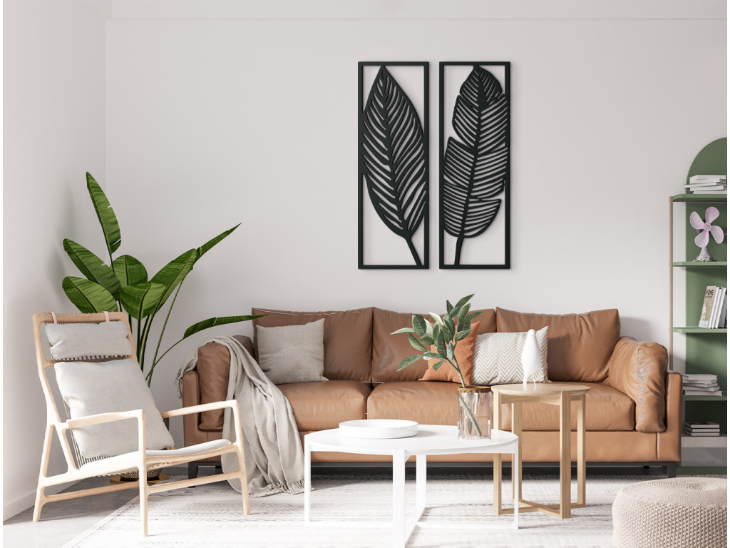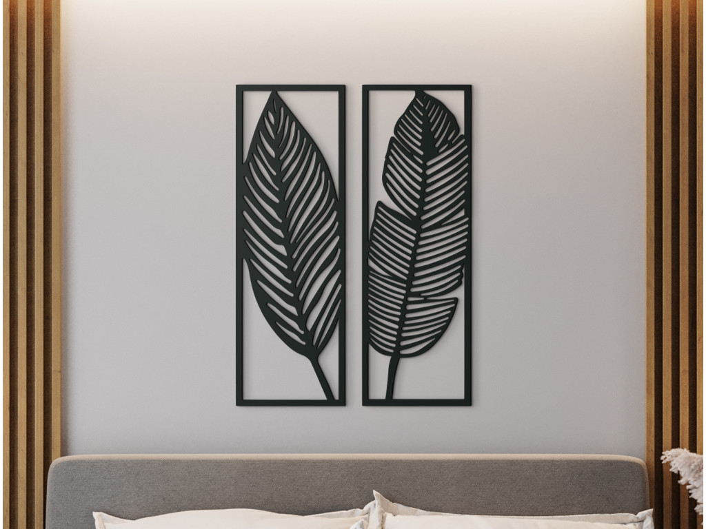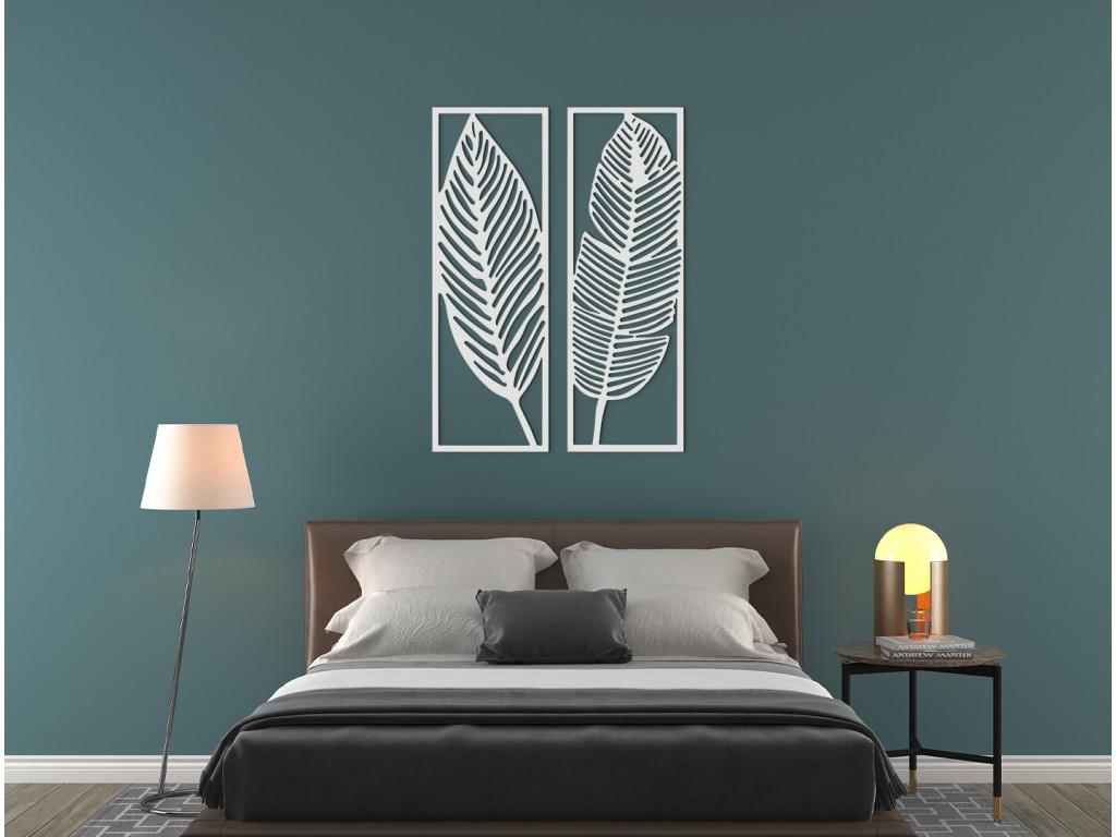 Tento dizajnový kúsok vnesie do vašej obývačky, spálne či chodby moderný nádych. Obraz sa skladá z 2 dielov na ktorých sú vyobrazené listy. Môžete ho zavesiť spolu ako jeden obraz, aj osobitne podľa jednotlivých miestností. Hodí sa nad posteľ, gauč, komodu.