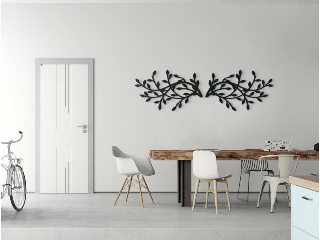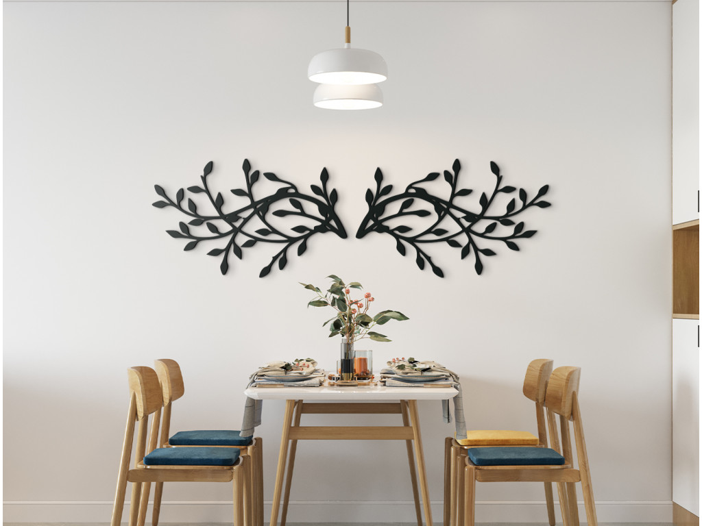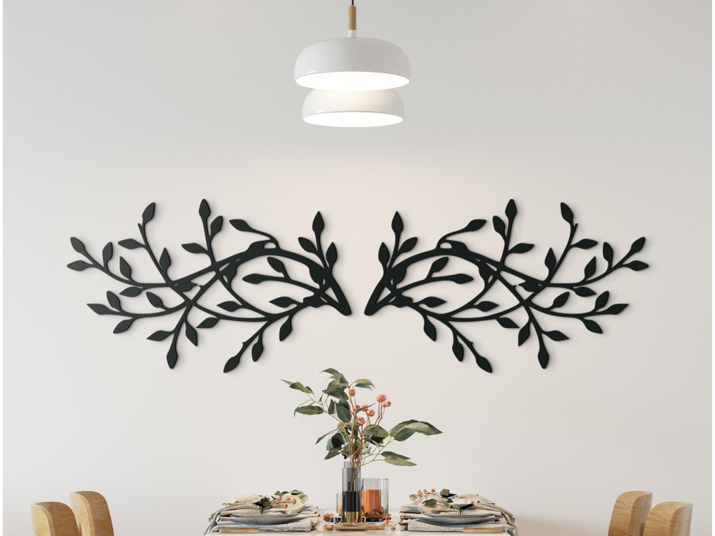 Skrášlite interiér elegantným a jemným doplnkom. Listy na konároch vnesú do miestnosti minimalistický dizajn. Dekorácia sa skladá z dvoch dielov, ktoré môžete zavesiť presne tak ako na obrázku. Dekorácia je vhodná do jedálne, kuchyne, chodby aj obývačky.