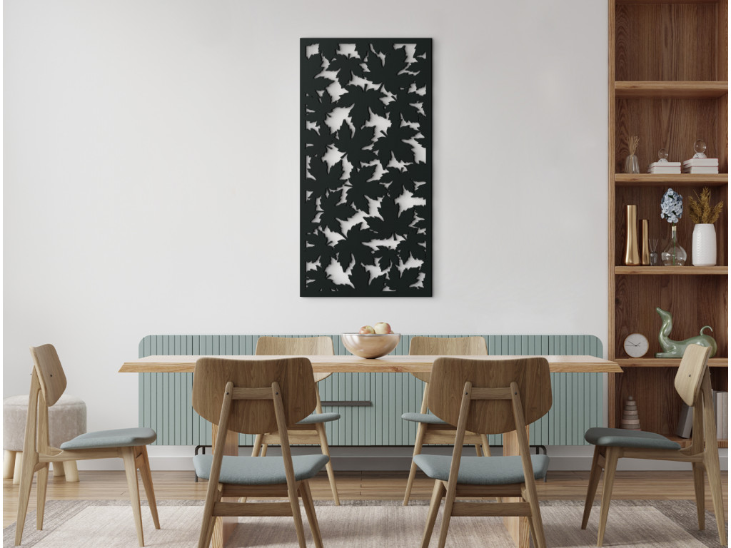 Vyrezávaný obraz Javorové listy bude dekoráciou, ktorú si zamilujete. Jednoduchý dizajn zaručí ľahké kombinovanie s nábytkom. Obraz je vhodný do moderných priestorov, chodieb aj kancelárskych priestorov.