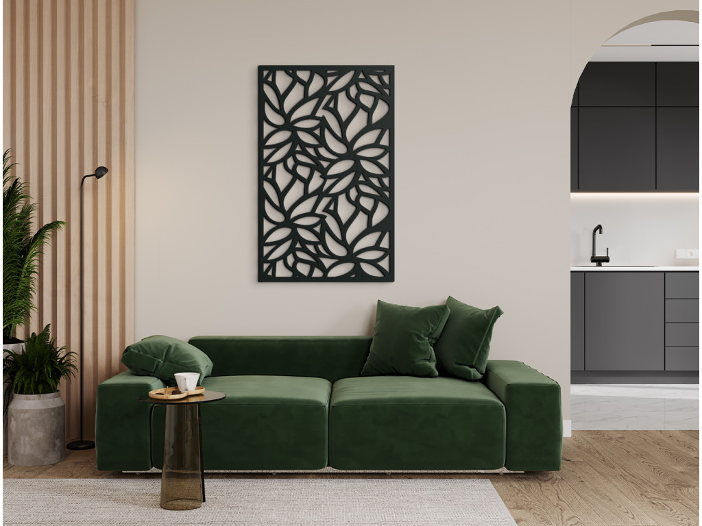 Vyrezávaný obraz Listy premení aj obyčajnú miestnosť na modernú. Listy sa hodia do moderných miestností, kancelárií aj klasických priestorov.. Môžete ho zavesiť a orientovať podľa vlastného štýlu. Hodí sa nad písací stôl, posteľ či gauč.