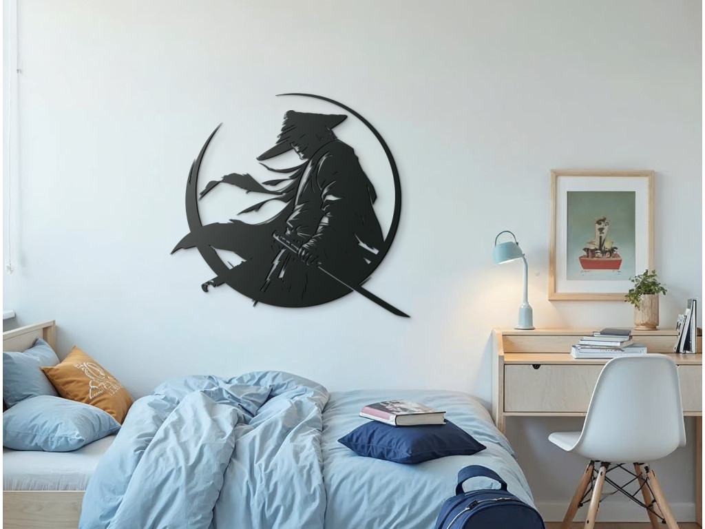 Okrúhla nálepka na stenu Bojovník v klobúku prináša do detskej izby hravý a odvážny dizajn. Veľký bojovník s klobúkom dodáva priestoru energiu a dobrodružný nádych. Jemné dekory, z ktorých je možné vybrať si a dobrodružný motív vytvárajú príjemnú a inšpiratívnu atmosféru pre deti.