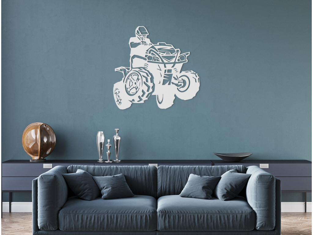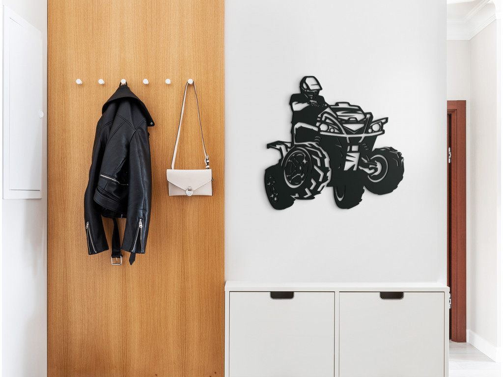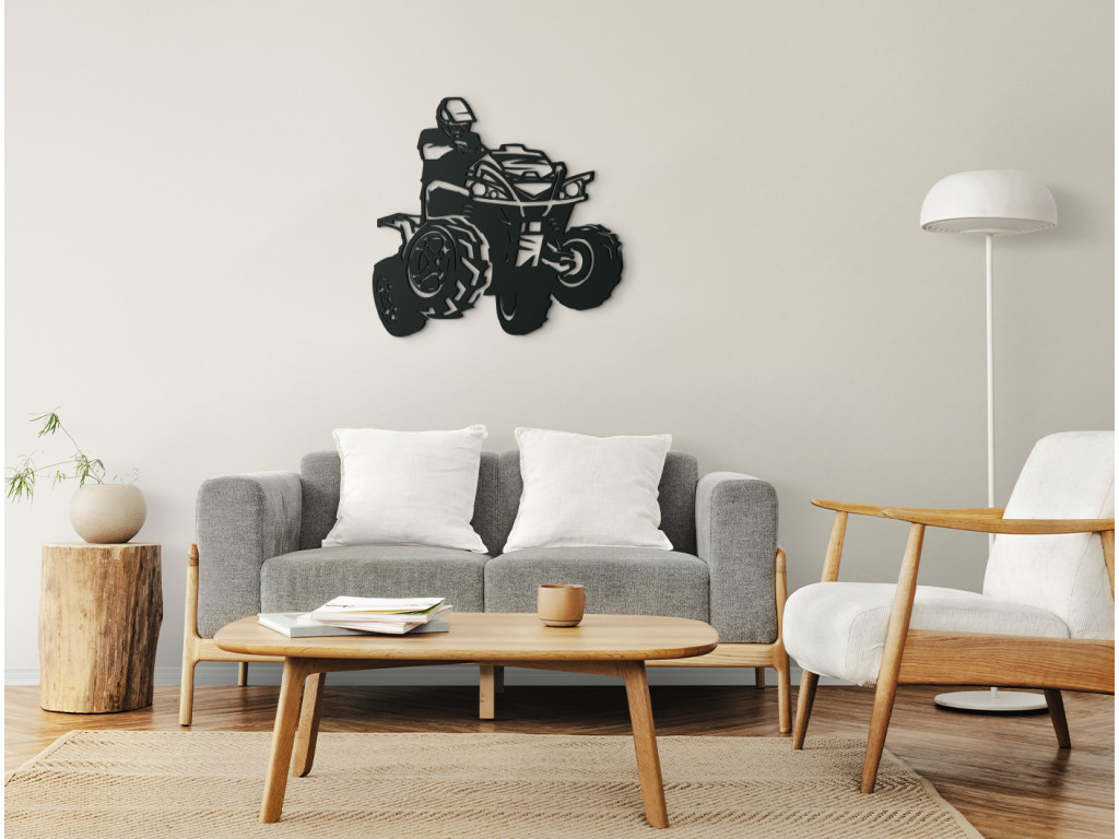 Drevená nálepka na stenu Štvorkolka sa hodí predovšetkým do moderných interiérov pre malých aj veľkých chlapov. Moderný dizajn je ideálny do štýlových detských izieb, obývačky či spálne, kde bude výborne ladiť s celkovým vybavením.