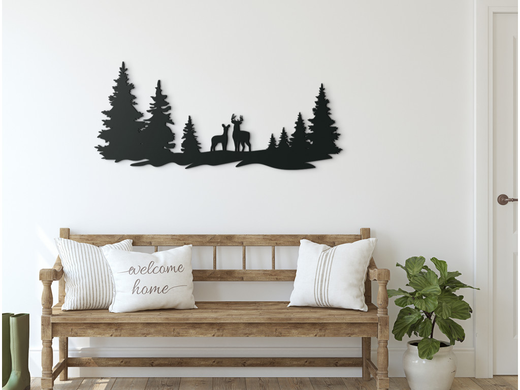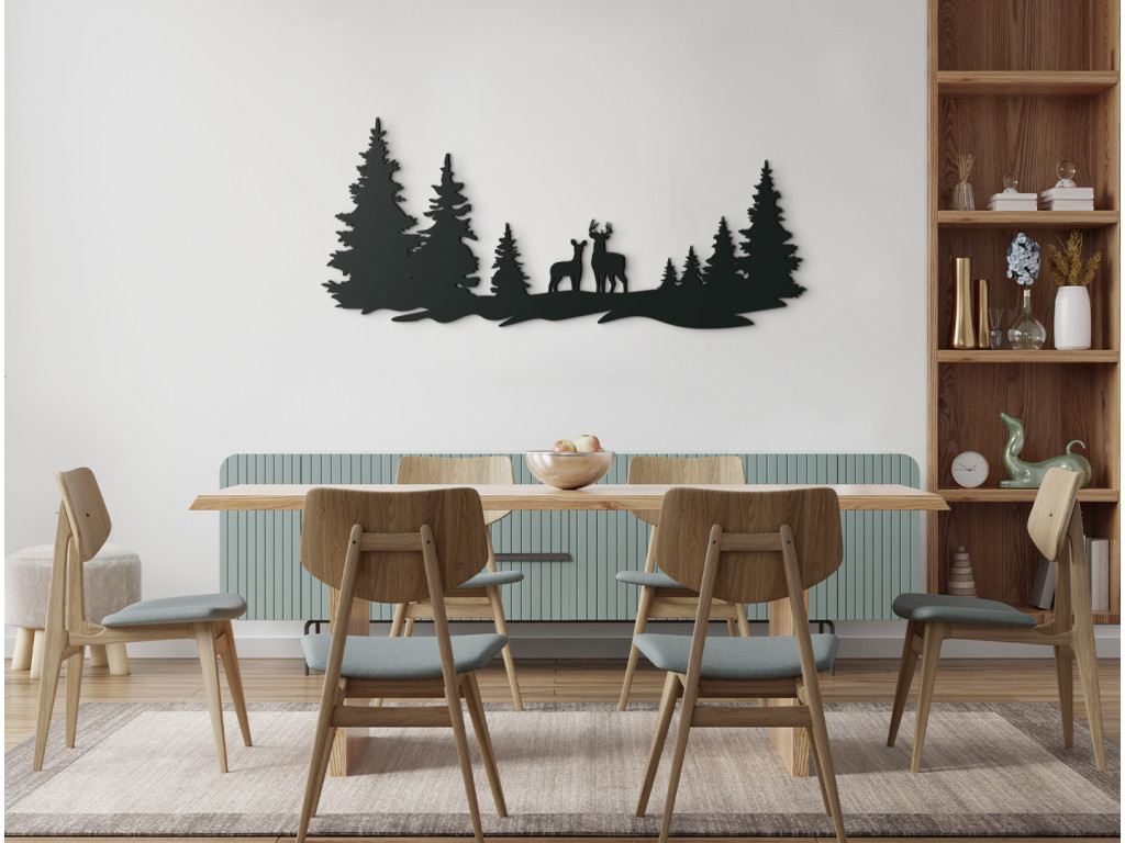 Vyrezávaný obraz zobrazujúci les vnesie do interiéru originálnosť a kúsok prírody. Je výborným doplnkom do bytu a domu. Jednoduchý dizajn z neho robí doplnok do akejkoľvek izby. Majestátne hory vnesú do interiéru jedinečnosť a originálnosť. Vybrať si môžete z viacerých farebných dekorov a veľkostí obrazu.