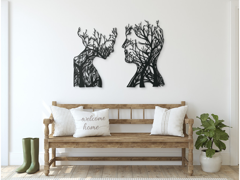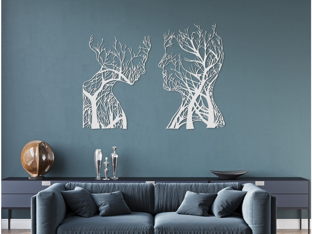 Zvýraznite stenu vašej obývačky novou drevenou nálepkou s originálnou tematikou. Je na nej vyobrazený muž aj žena so zaujímavým detailom - vyrastajú v nich konáre stromov. Dekorácia je vhodná do malých aj veľkých priestorov