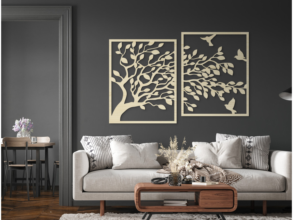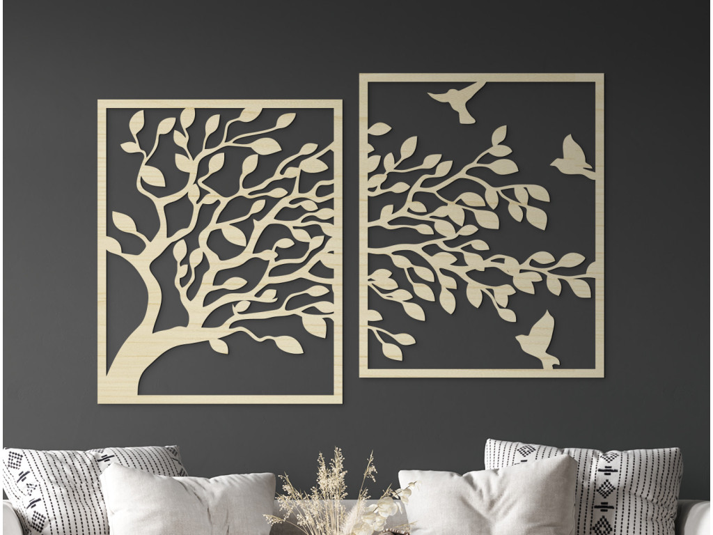 Drevený obraz na stenu Strom a vtáčatá prináša do vášho domova kúsok prírodnej krásy a harmónie. Detailné vyrezávanie stromu a vtákov vytvárajú živý a dynamický obraz, ktorý upúta pozornosť. Ideálna dekorácia pre obývačku, pracovňu či spálňu, kde dodá priestoru pokojný a príjemný nádych.