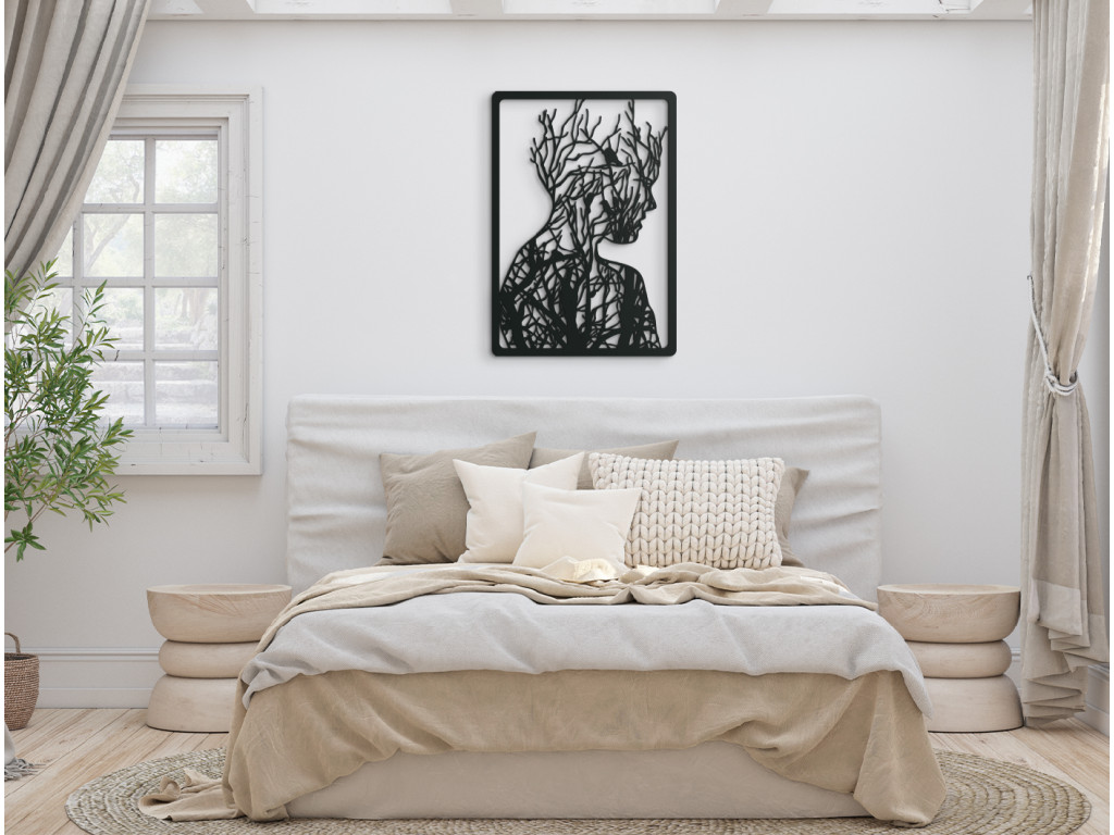 Moderná, elegantná a jedinečná. Hovoríme o drevenej nálepke Žena, ktorá zapadne do každého interiéru. Žena zobrazená na obraze pozerá do priestoru po celom tele sa v nej rozrastajú konáre stromu. Dekorácia je vhodná do malých aj veľkých priestorov