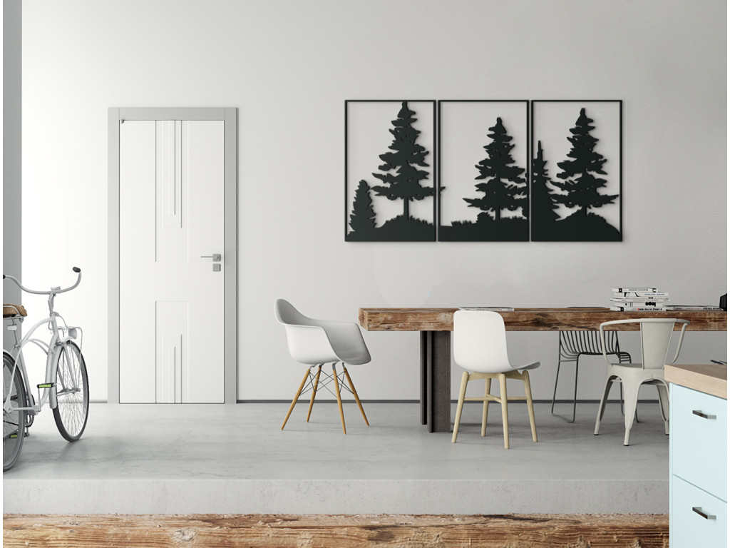 Drevený obraz Les s jedinečným dizajnom vnesie do interiéru elegantný dizajn. Je vhodný do kancelárskych priestorov, verejných chodieb, bytu. Obraz je zložený z 3 dielov, ktoré dokopy vytvárajú krásny pohľad na les. Vybrať si môžete z viacerých farieb a rozmerov.