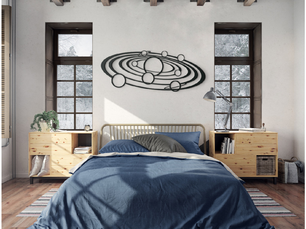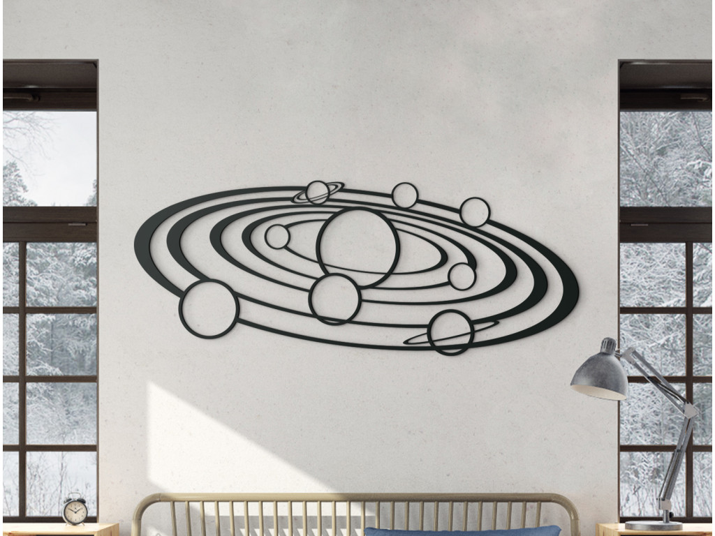 Slnečná sústava je planetárny systém, ktorého súčasťou je aj naša Zem. Teraz si ju môžete zavesiť aj do vašej obývačky. Dekorácia zobrazuje všetky planéty slnečnej sústavy, vrátane Slnka. Minimalistický dizajn sa bude hodiť do obývačky, spálne, predsiene aj chodby.