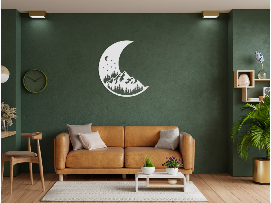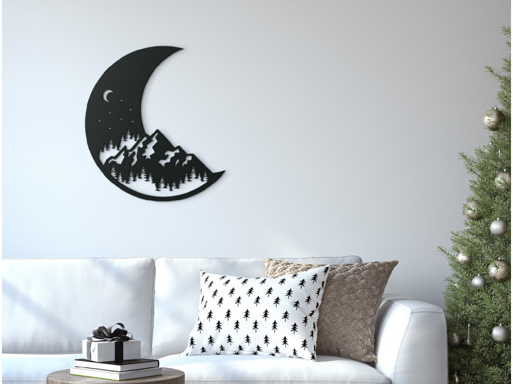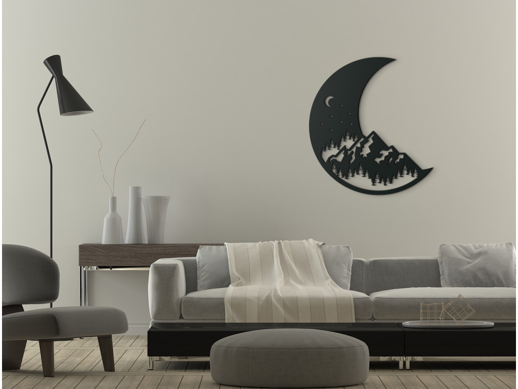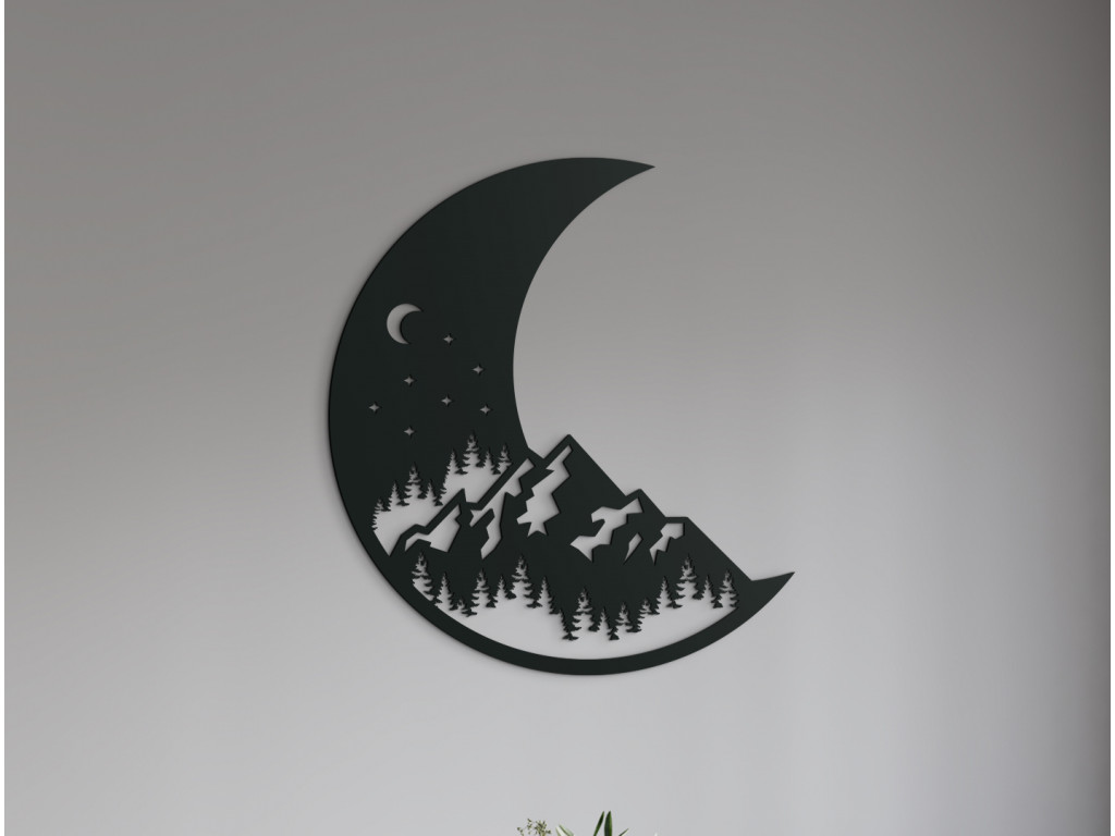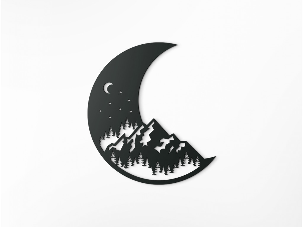 Nechajte prírodu zvýrazniť váš interiér. Tento atypický obraz vyzerá naozaj dizajnovo. Nálepka v tvare mesiaca nie je len taká obyčajná. Nájdete v nej les, nad ktorým sa rozprestierajú hory. Hviezdy a Mesiac ako ďalší znak noci nájdete nad týmito vrchmi.