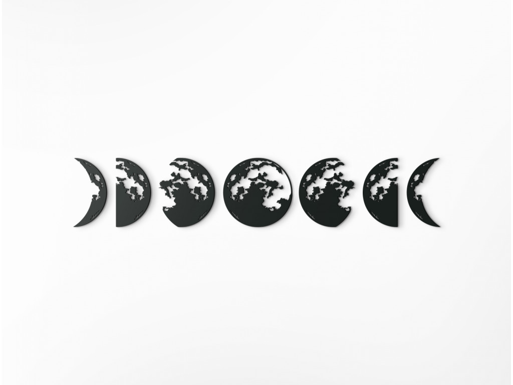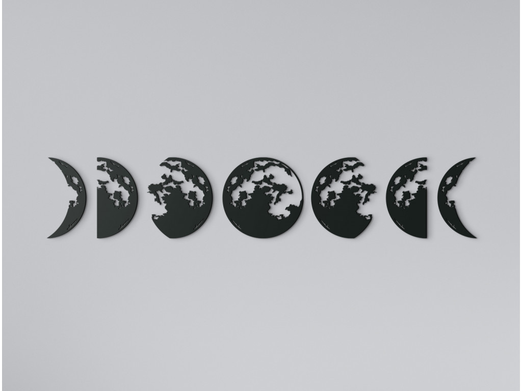 Moderná nálepka s témou Mesiaca vynikne v každom interiéri. Dekorácia sa rozprestiera na 7 dieloch, ktoré spolu súvisia a vytvárajú nádherný obraz do modernej obývačky. Na konkrétnych dieloch sú vyobrazené fázy Mesiaca.