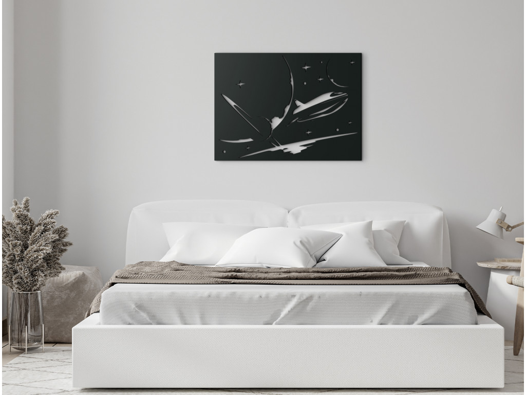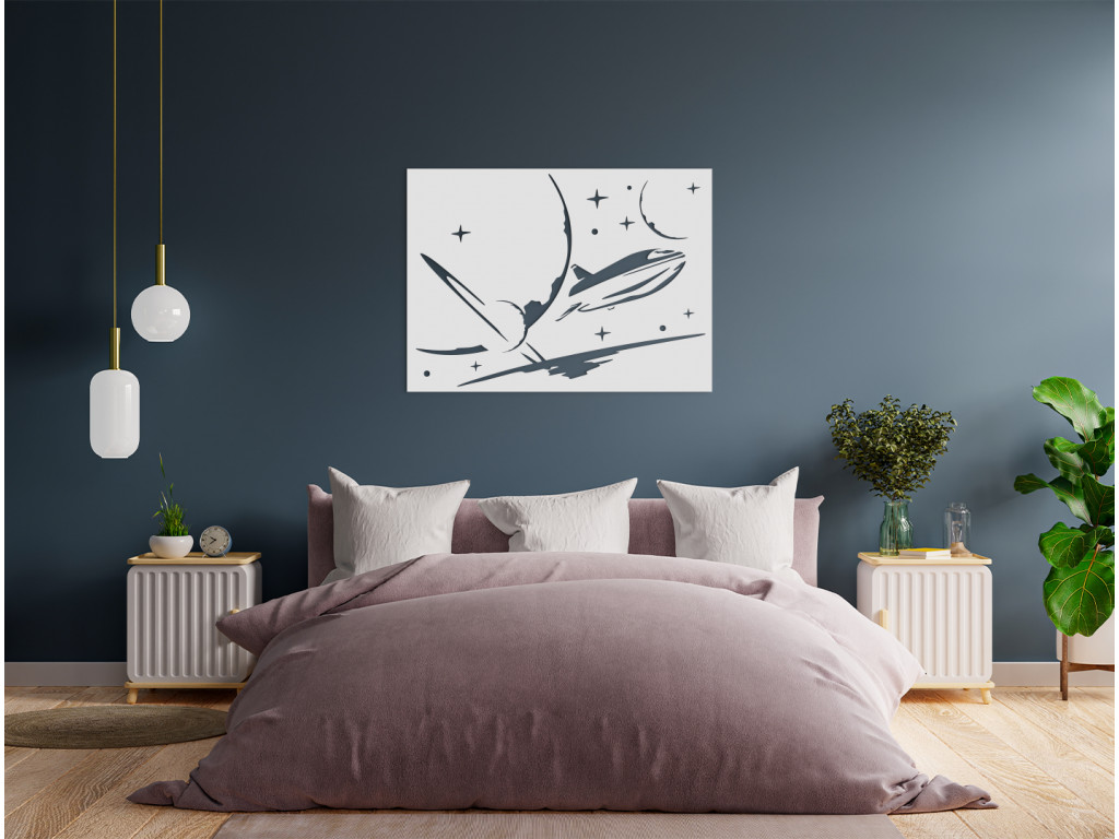 Drevený obraz Kozmická loď vnesie do interiéru jedinečnosť. Drevená nálepka je vhodná nad posteľ, stôl, komodu. Hodí sa do moderných aj klasických detských izieb. Drevený obraz jednoducho zažiari v každej izbe.