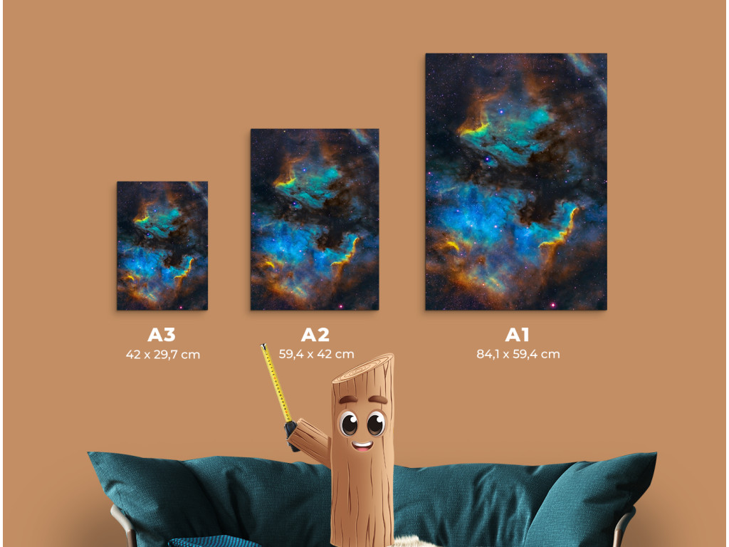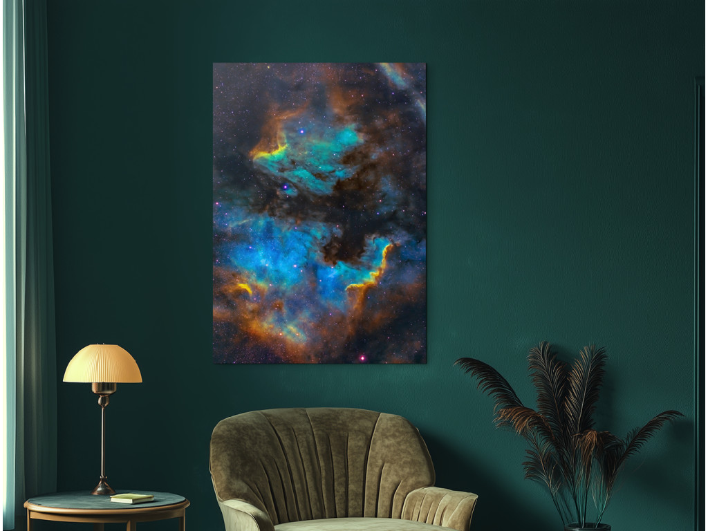 Snímka Hmlovina Pelikán v súhvezdí Labuť zaujme tvarom pripomínajúcim vtáka v lete. Žiarivé oblasti ionizovaného vodíka vytvárajú dramatickú, no harmonickú kompozíciu v blízkosti hmloviny Severná Amerika. Vďaka UV tlači vyniknú farby a štruktúry a obraz sa hodí do moderného interiéru alebo pracovne pre milovníkov vesmíru.