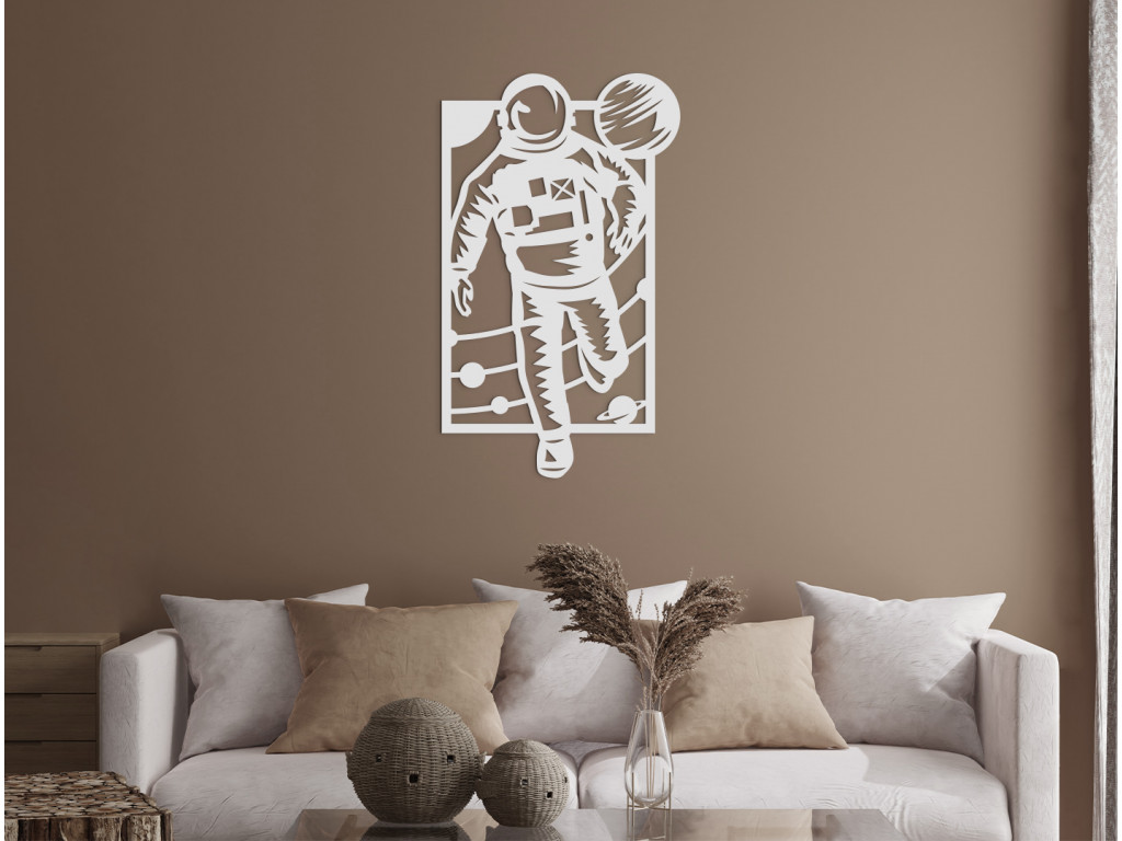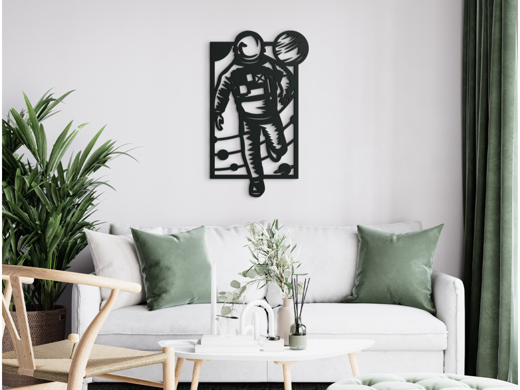 Obrazy s témou vesmíru prinášajú do interiéru originálnosť. Takým je aj drevený obraz Astronaut, ktorý si môžete vybrať z viacerých farebných odtieňov. Vznášajúci sa astronaut vo vesmíre akoby vychádza z rámu obrazu. Za ním sa nachádzajú planéty slnečnej sústavy. Hodí sa do obývačky, detskej izby aj spálne.