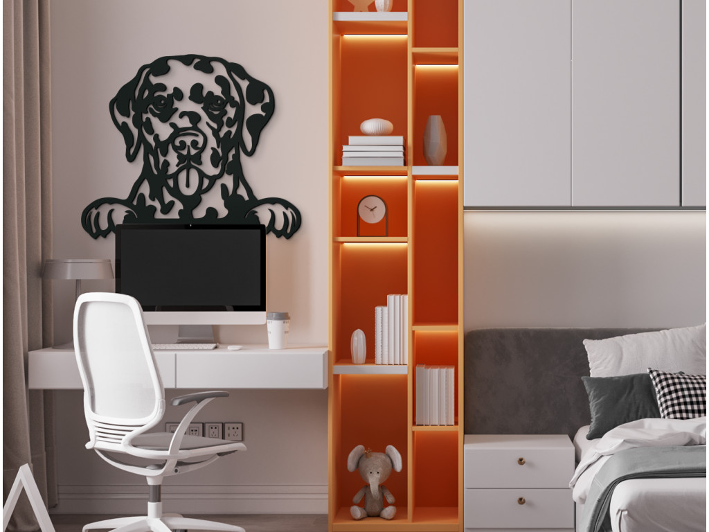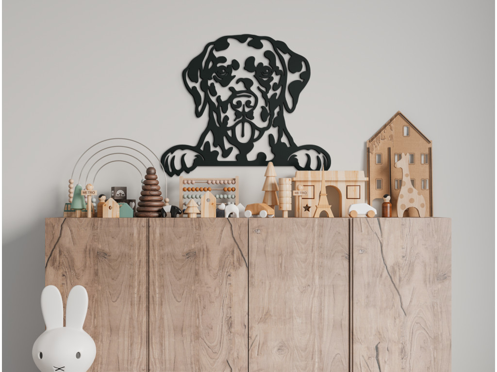 Snehobiely psík pokrytý čiernymi fľakmi zaručenie nesmie v kolekcii obrazov štvornohých miláčikov chýbať. Šibalské oči a nezbedné labky sú zvečnené na portréte hneď v 3 rôznych rozmeroch a 8 farbách. Dalmatínec vám tak môže doma robiť spoločnosť navždy prostredníctvom originálnej drevenej dekorácie.