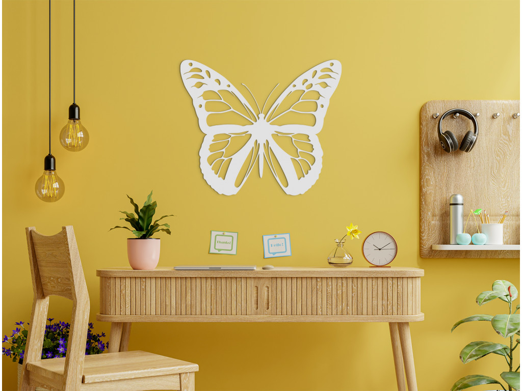 Éterická krása motýľov je doslova pastvou pre oči. Potešte sa pohľadom na ich krehké a zároveň ornamentálne krídla, kedykoľvek budete chcieť. Stačí, ak si na stenu nalepíte drevenú dekoráciu s motívom motýľa s rozprestretými krídlami. Nálepka sa hodí nielen na biele, ale aj na farebné steny. Výber farebného dekoru je už len na vás.