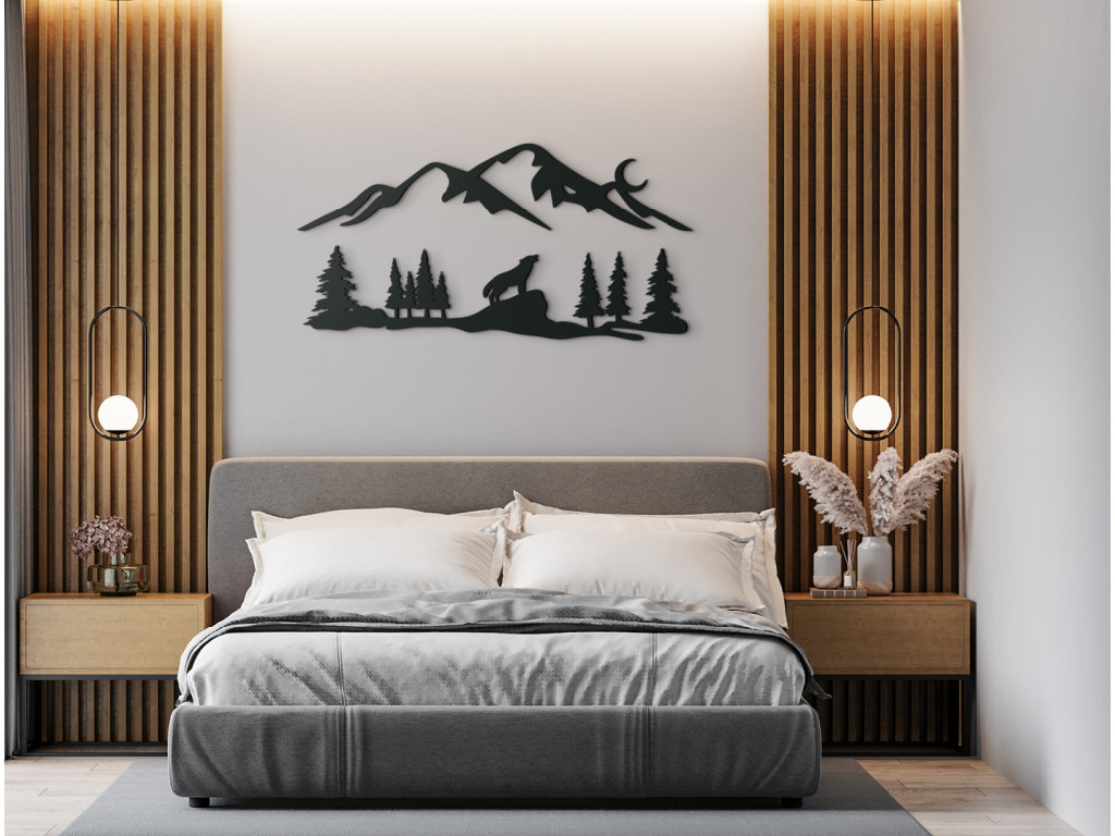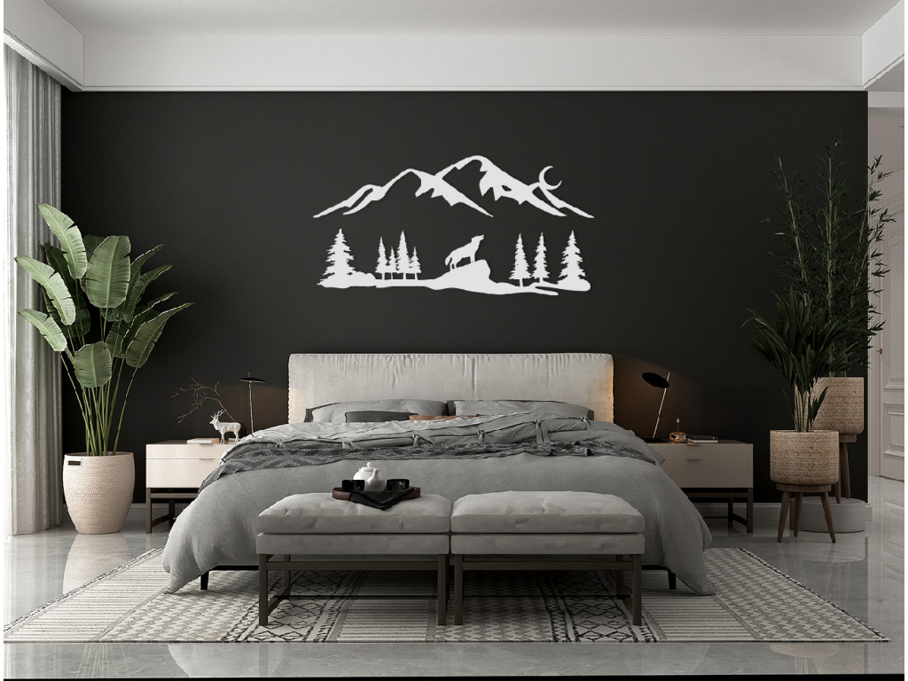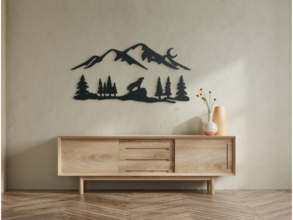 Dodajte svojej spálni, pracovni alebo obývačke tajomnú atmosféru nočných hôr, ktorými sa nesie ťahavé vlčie zavýjanie. Drevená nálepka s motívom vlka stojaceho na skale a zvolávajúceho svorku na lov pripevnená na stene si získa okamžitú pozornosť každého už pri vstupe do miestnosti. Na dokreslenie celkového dojmu je obraz doplnený horskými masívmi a mesiacom v pozadí.