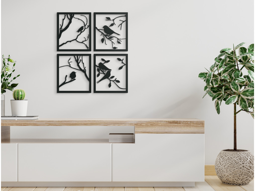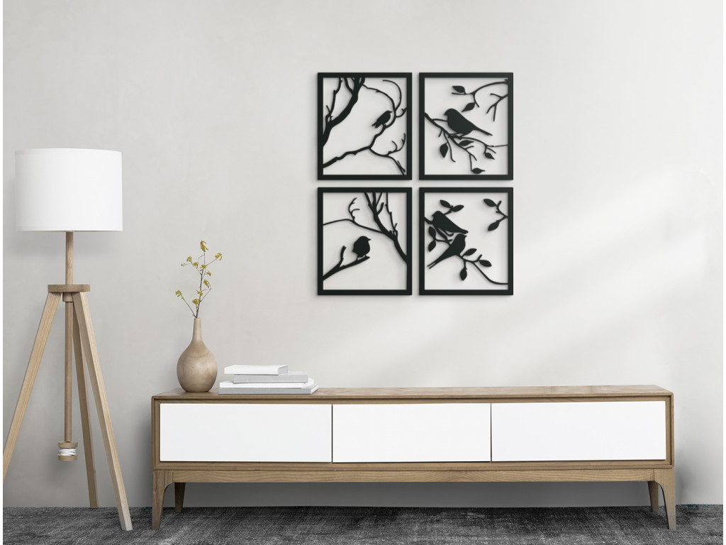 Spievajúce sýkorky na konároch stromu ozdobia každú stenu v domácnosti. Obraz sa skladá zo 4 dielov, ktoré je možné zavesiť spolu aj osobitne. Okrem jedinečného dizajnu so sebou prinesú aj kúsok harmónie. Dekorácia je vhodná do jedálne, kuchyne, chodby aj obývačky.