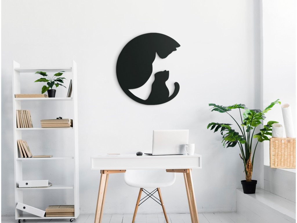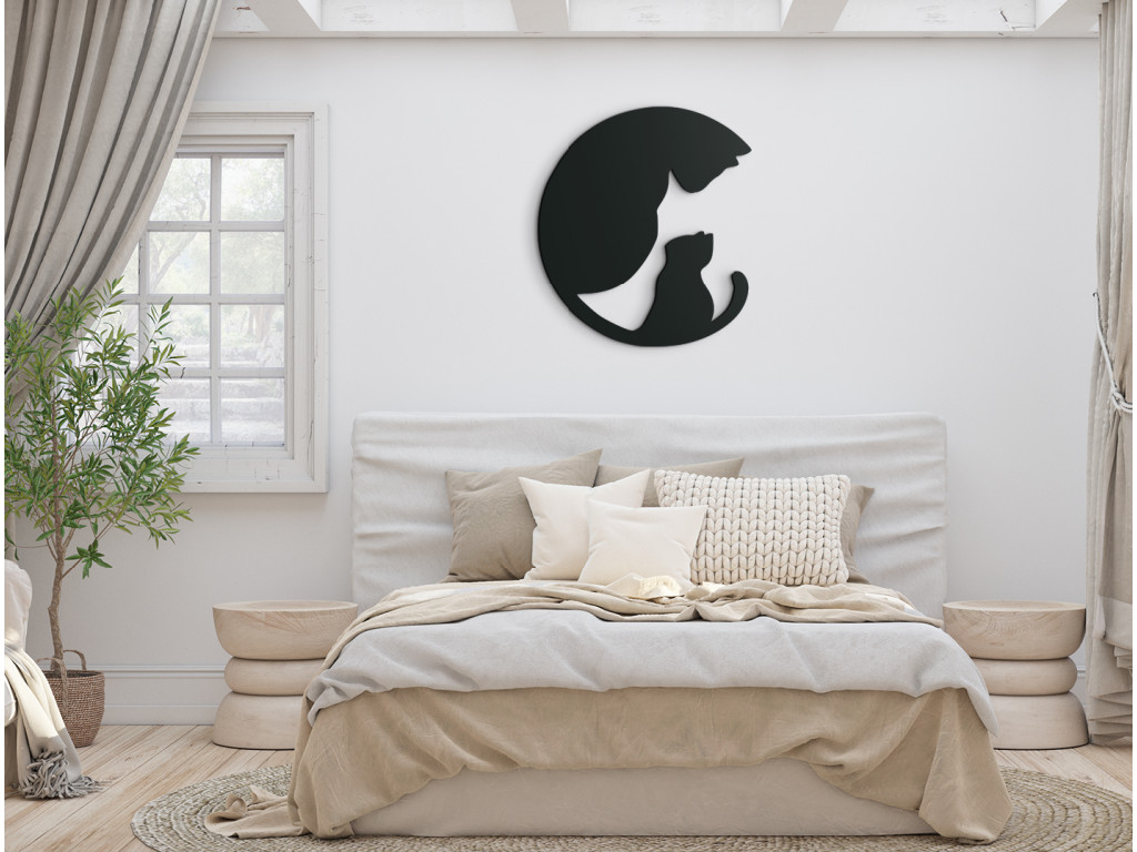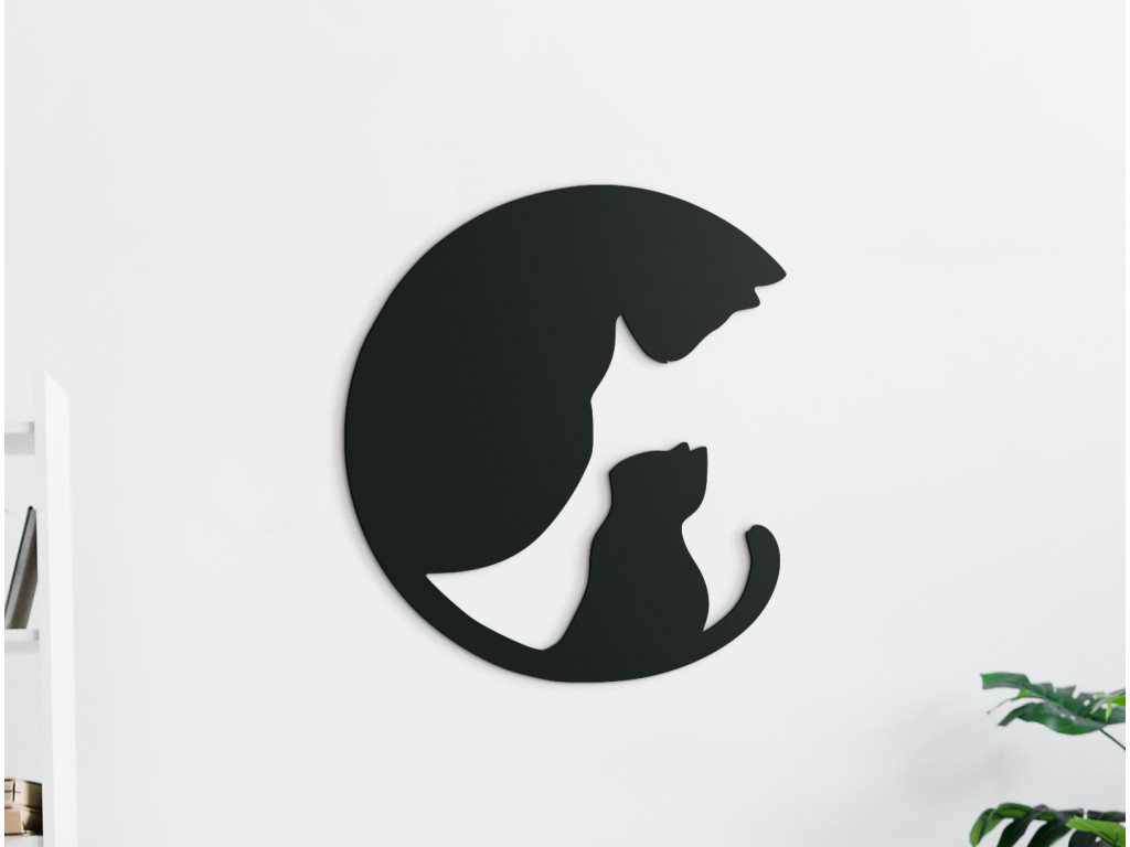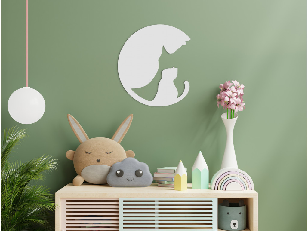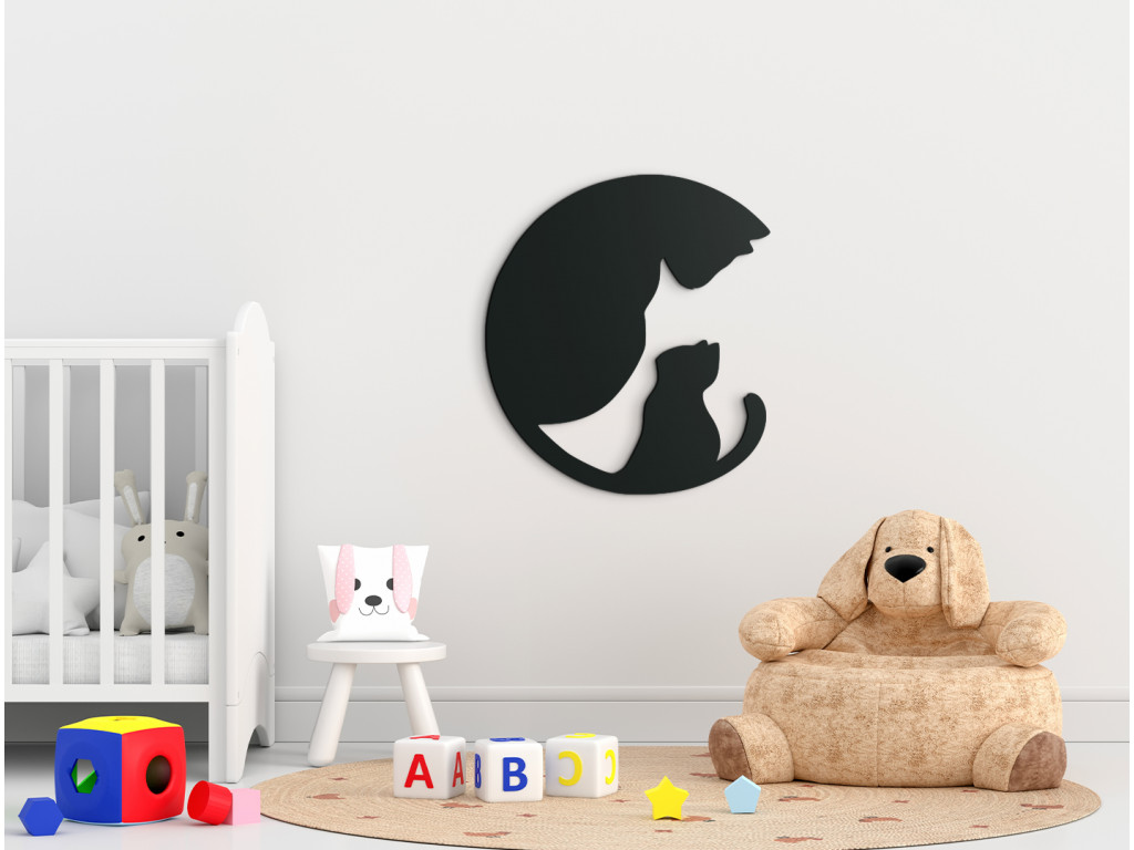 Zaujímavá dekorácia na stenu s motívom mamy - mačky a jej malého mačiatka sa hodí nielen do detskej izby. Nálepka zobrazuje dospelú mačku, ktorej v ohybe chvosta sedí mačiatko, pričom obraz spolu naznačuje podobu kruhu. Trendový dizajn dokonale skrášli interiér každého, malého i veľkého milovníka mačiek.