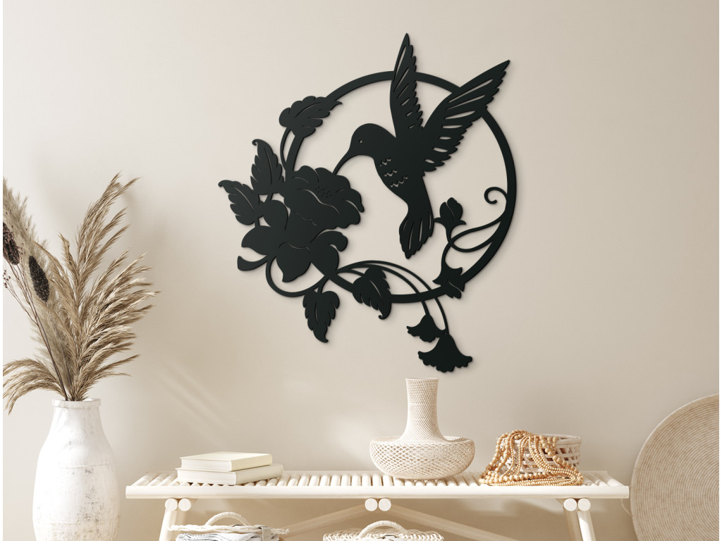 Dekorácia Kolibrík v rozkvete zachytáva pohyb a gráciu tohto pôvabného vtáka v momente, keď sa týči okolo pestrofarebného kvetu. Precízne vyrezávanie a detailné spracovanie dreveného materiálu vytvárajú realistický a zároveň umelecký dojem. Vďaka svojmu živému dizajnu sa táto dekorácia ľahko integruje do rôznych interiérových štýlov, od moderných až po rustikálne. Kolibrík je ideálnym doplnkom pre tých, ktorí oceňujú krásu prírody a chcú do svojho domova priniesť kúsok exotickej elegancie.