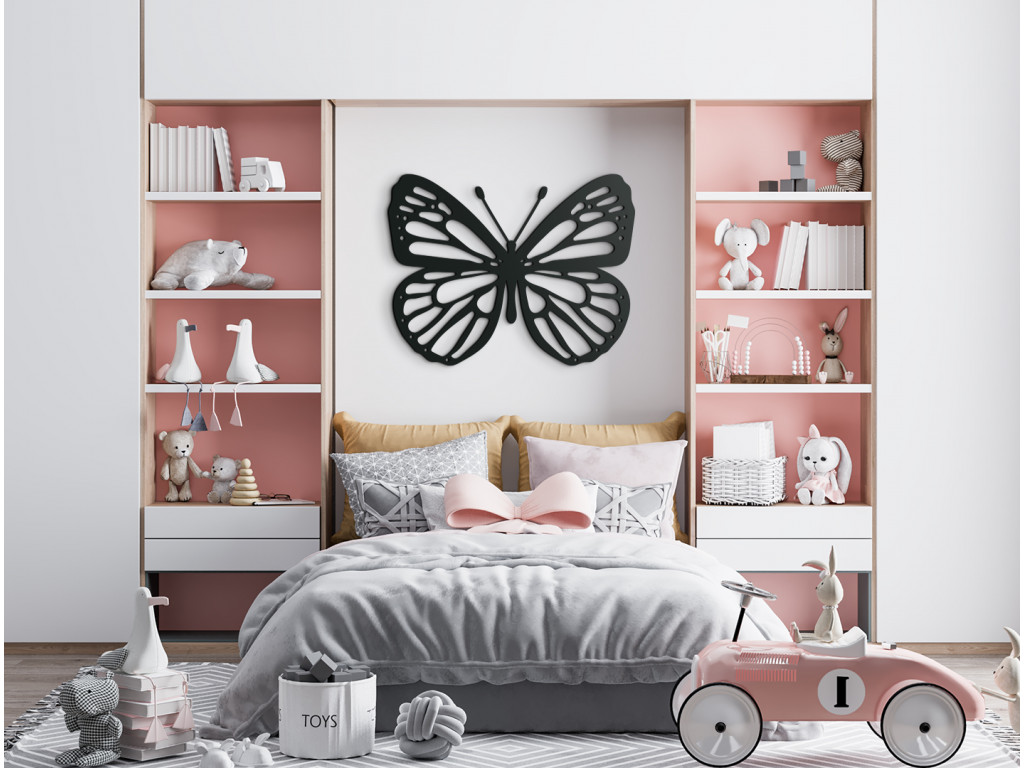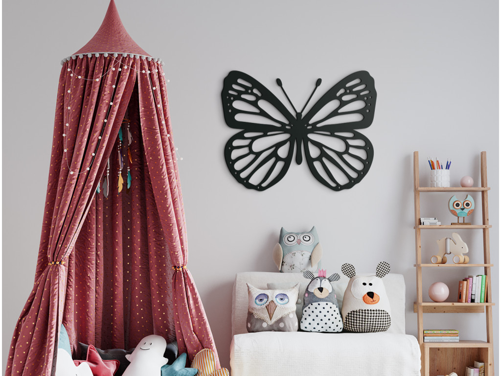 Drevenú nálepku s týmto motívom môžete umiestniť nad detskú postieľku, prebaľovací pult či detský stolík, aby vášho drobčeka potešila, kedykoľvek sa na ňu pozrie. Motýle patria medzi upokojujúci hmyz, ktorý naladí na príjemnú atmosféru.