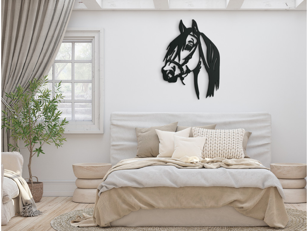 Kone a jazdectvo sú pre mnohých vášňou na celý život. Drevená nálepka na stenu s vyobrazením konskej hlavy s nasadenou ohlávkou bude tou pravou dekoráciou pre každého správneho koničkára. Vďaka možnosti výberu farebného vyhotovenia je vhodná na biele i farebné steny.
