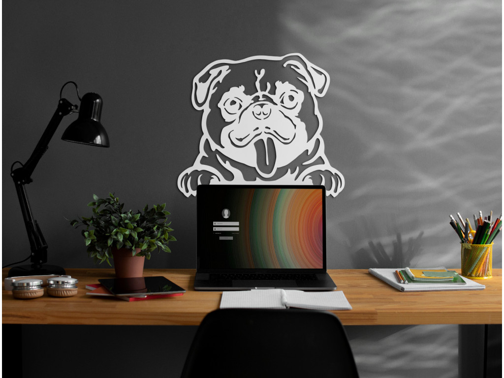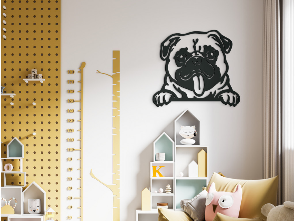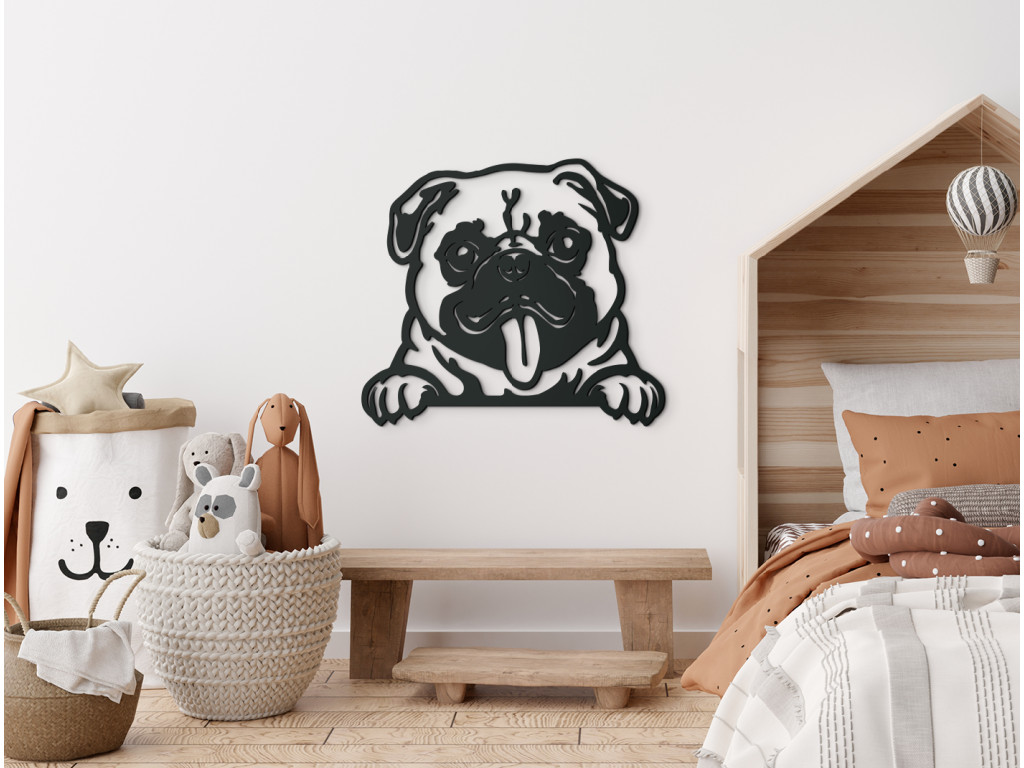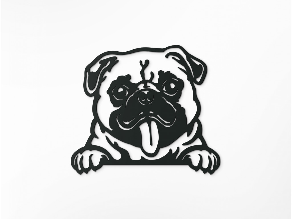 Roztomilý a nezameniteľný výraz tváre preslávil tohto psíka rovnako ako jeho vľúdna a spoločenská povaha. Mopsy si vďaka drobnému vzrastu, zhusteným črtám, typickým vráskam, sklopeným uškám a skrútenému chvostu obľúbili malí aj veľkí. Svetlohnedá srsť kontrastuje s čiernou papuľkou a veľkými očami, ktoré verne zachytáva aj drevená podobizeň vo viacerých dekoroch. Tie môžete vyberať podľa vkusu či interiéru. Mops tak bude verným spoločníkom rodinným príslušníkom a zároveň unikátnou dekoráciou na stene.