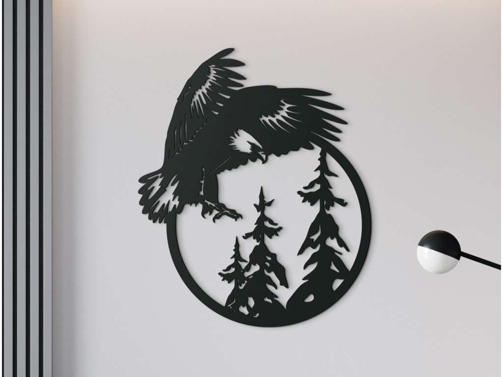 Nalepte si na stenu do obývačky, pracovne alebo spálne drevenú nálepku s veľkolepým motívom Orol útočí. Fascinujúca scéna z divej prírody dodá každej miestnosti atmosféru vitality a živelnej energie. Dekorácia zobrazuje zosadajúceho kráľa nebies s dopredu vystrčenými pazúrmi, ako už-už dosahuje svoju korisť. Pozadie obrazu v okrúhlom ráme tvoria ihličnaté stromy.