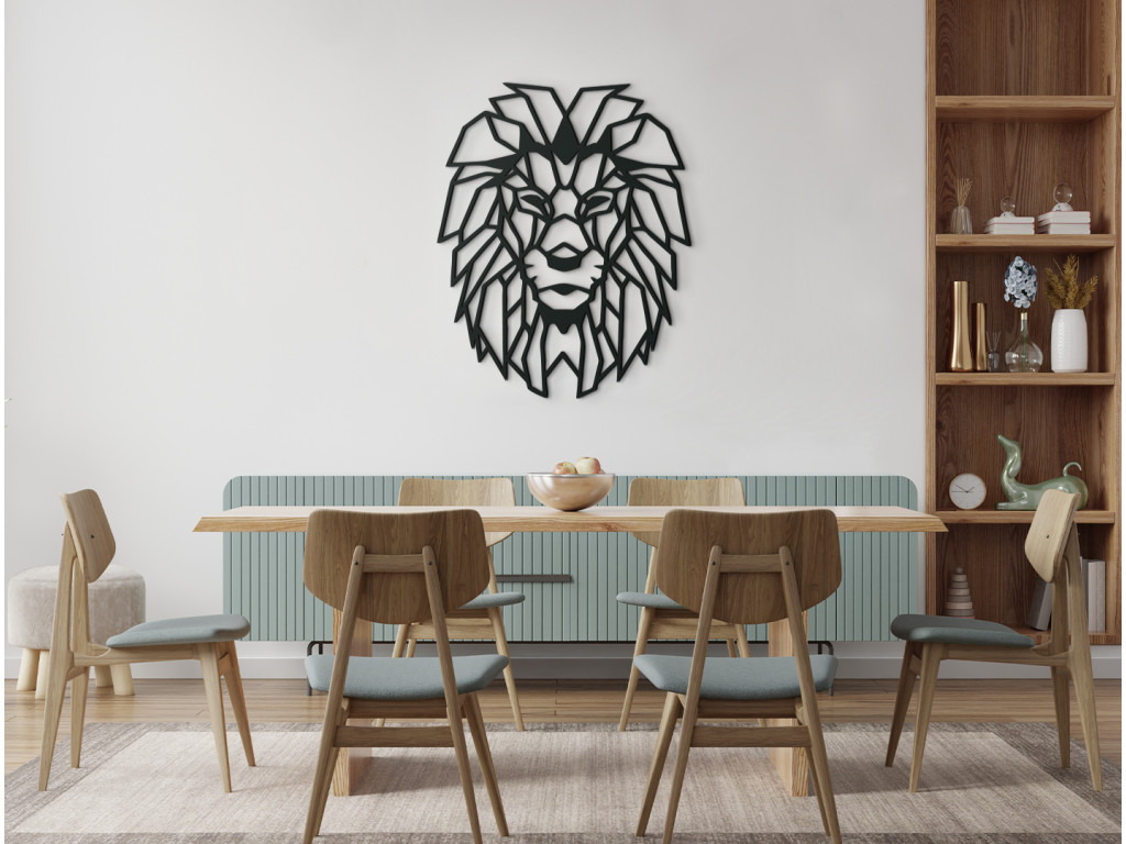 Originálna vyrezávaná nálepka na stenu Polygonálny lev je výnimočná nielen pre svoj originálny dizajn, ale aj zaujímavý motív. Drevený obraz znázorňuje hlavu kráľa zvierat vyobrazenú v modernom umeleckom štýle. Dekorácia sa hodí do moderných aj klasických interiérov, spální, kancelárií a iných priestorov.