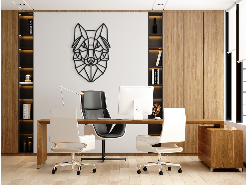 Máte radi lesné zvieratá? Moderná drevená nálepka s motívom vlčej hlavy je kombináciou moderného dizajnu a jednoduchosti. Dekorácia je ideálna do moderných aj klasických interiérov, chát či kancelárií. Je tiež ideálnym darčekom pre poľovníkov, milovníkov hôr či turistov.