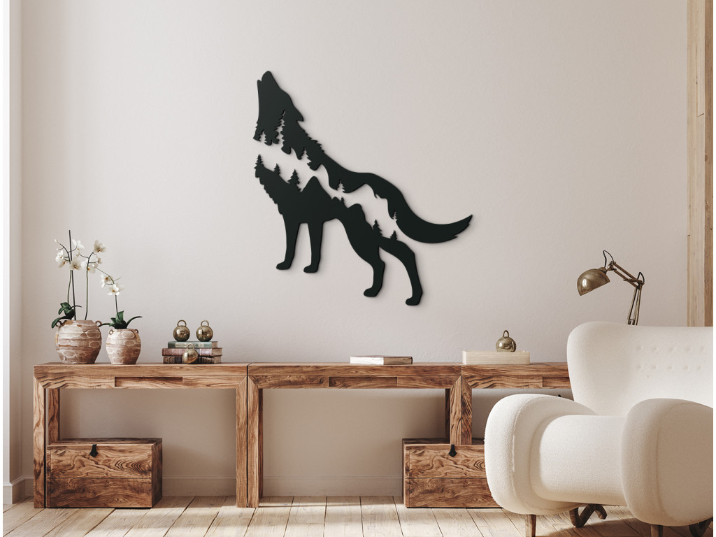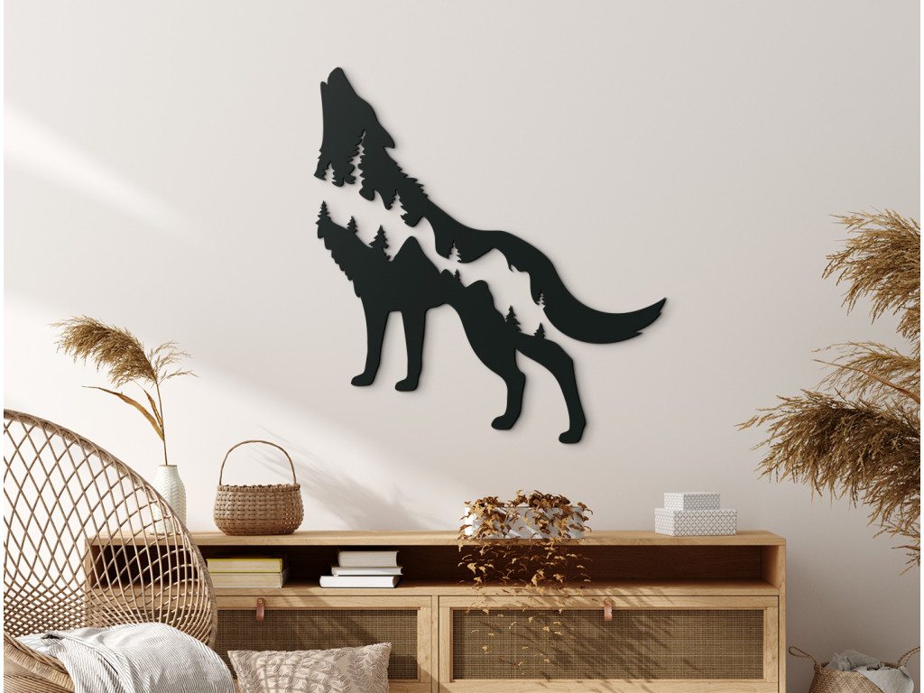 Drevená dekorácia na stenu Vlk a hory