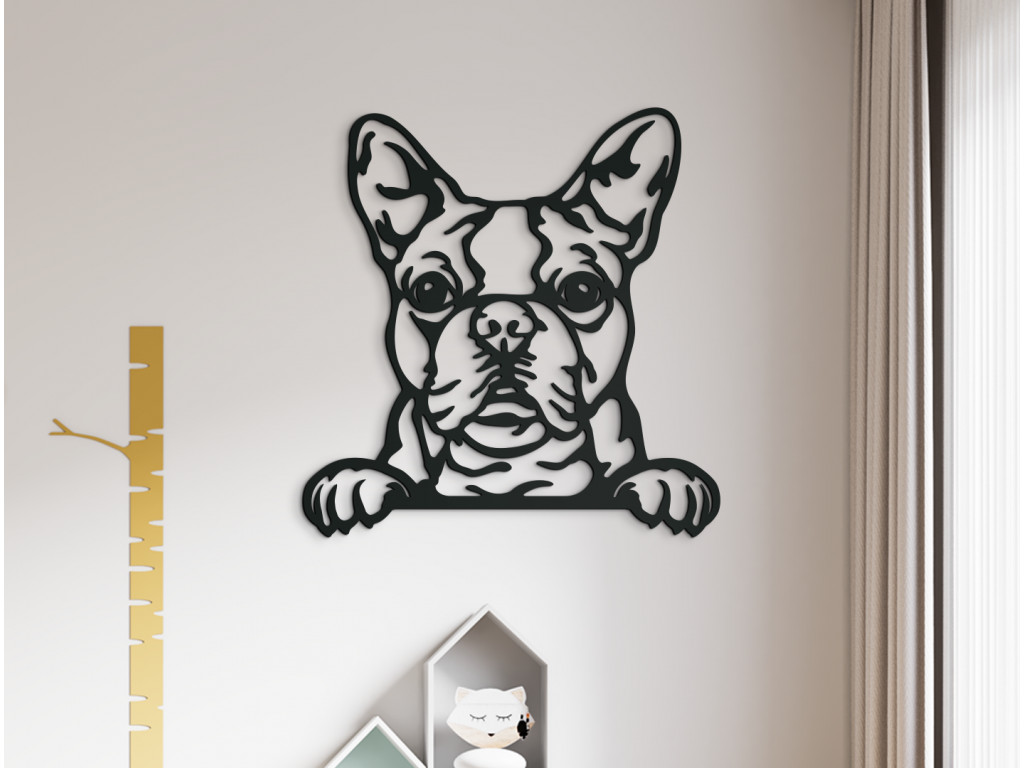 Prinajmenšom vzhľadom a povahou. Vznikol totiž krížením buldočka, boxera a anglického teriéra, takže jeho črty a stavba tela sú veľmi podobné v realite a aj na našom portréte. Ak je Frienchie alebo Bostonský teriér súčasťou aj vašej domácnosti, určite viete, že sú vernými maznáčikmi, ktorí si zaslúžia mať vystavenú vlastnú podobizeň. Nálepka psa s hravými labkami bude dokonalou dekoráciou do detskej izby alebo psieho kútika v interiéri. Drevený obraz na stenu Francúzsky buldoček si môžete vybrať z viacerých odtieňov dekorov podľa vášho vkusu či konkrétneho sfarbenia vášho psíka.