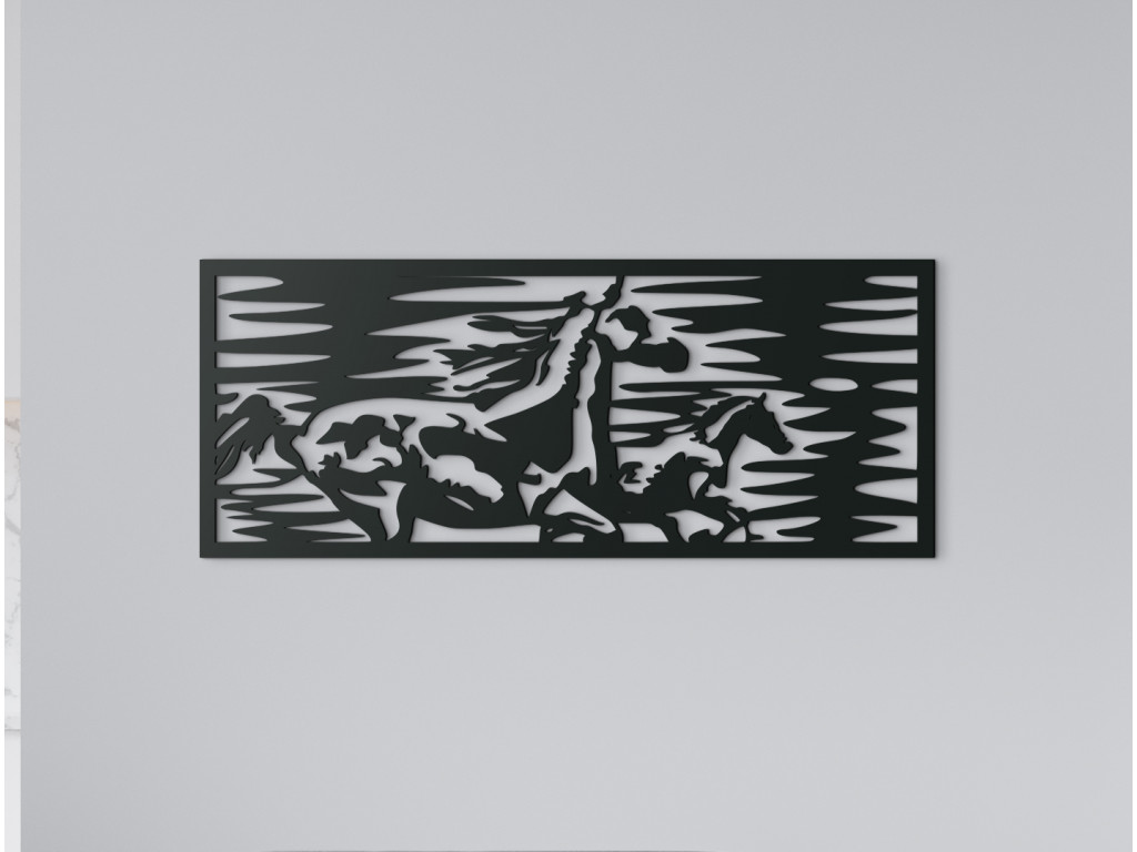 Moderný drevený obraz s pútavým námetom cválajúcich koní chytí za srdce nejedného koničkára. Ušľachtilé zvieratá znázornené v plnom cvale pôsobia energickým a nespútaným dojmom a vnesú do miestnosti závan slobody a radosti z pohybu.