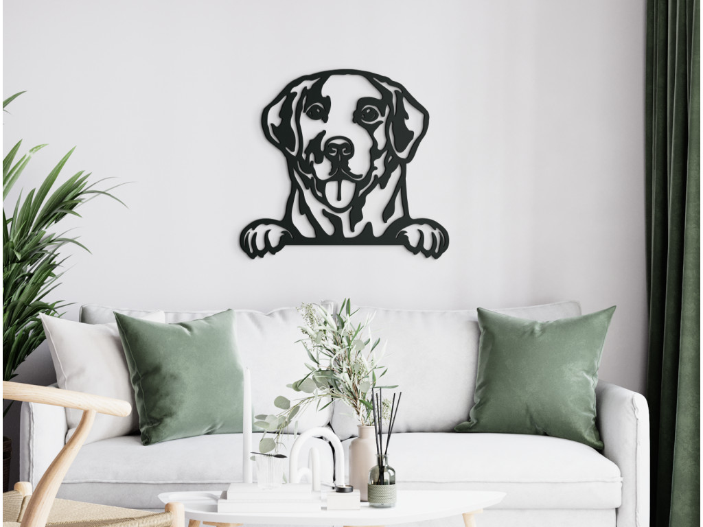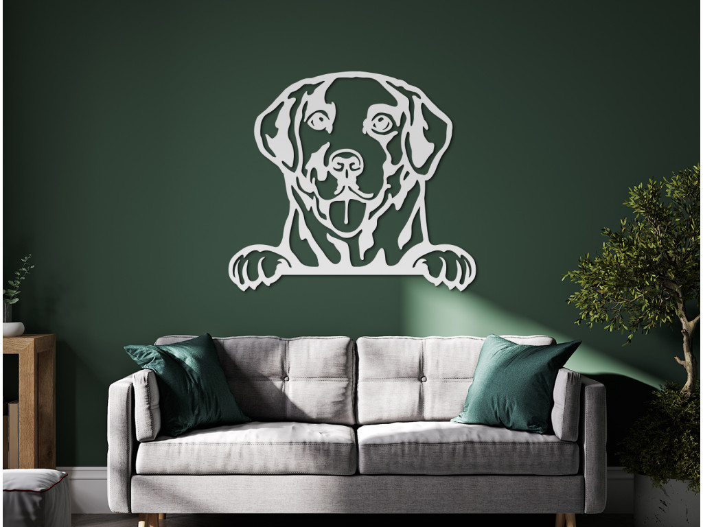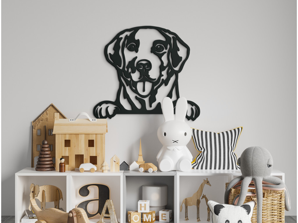 Labradorský retríver má priateľský vzhľad, krátku srsť a širokú lebku s mohutným krkom. Usmievavú podobizeň zachytáva drevený portrét až v 3 rôznych rozmeroch a 8 farbách. Sympatický labrador s neposednými labkami tak bude môcť vo dne v noci verne strážiť svojich majiteľov v chodbe či detskej izbe.