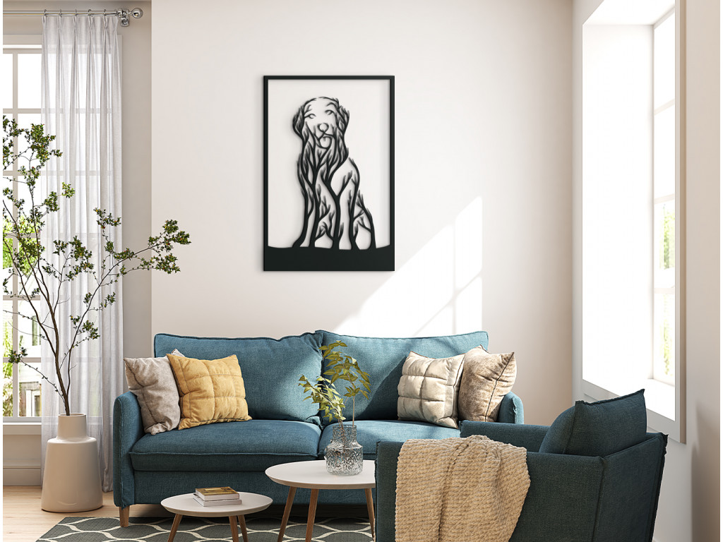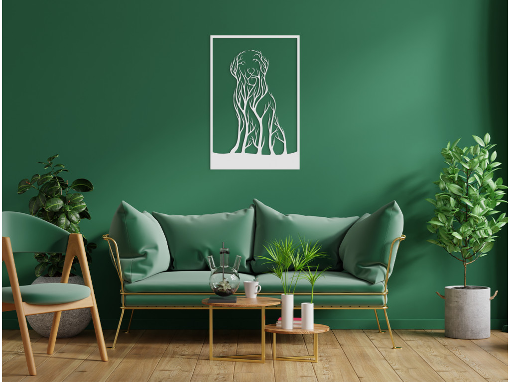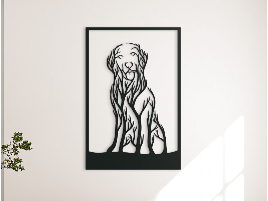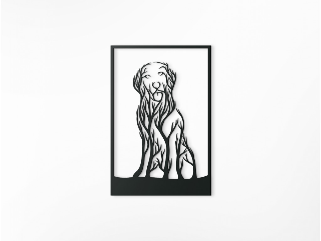 Drevený 3D obraz s motívom sediaceho psa si získa srdcia všetkých psičkárov. Nálepka na stenu znázorňuje najlepšieho priateľa človeka, avšak pri detailnejšom pohľade je vidieť, že telo psa sa skladá z korún stromov. Obraz má nádherné vypracované detaily.