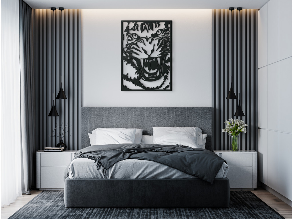 Nevšedný trendový dizajn drevenej nálepky Tiger útočí sa hodí do interiérov zariadených v modernom, retro i tradičnejšom štýle. Nalepte ho napríklad do obývačky, spálne alebo pracovne.