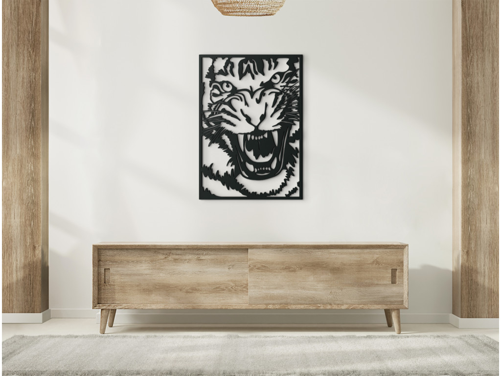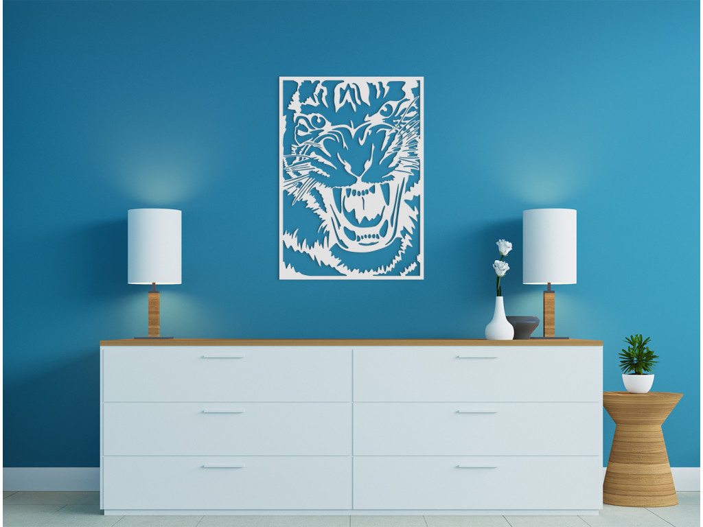 Nalepte si na stenu drevenú dekoráciu, ktorá vyvoláva príjemné zimomriavky. Vyrezávaný obraz Tiger útočí zobrazuje detail hlavy útočiaceho tigra v umeleckom vyhotovení. Hrozivé tesáky a nebezpečný výraz v očiach vzbudzujú rešpekt už na prvý pohľad.