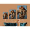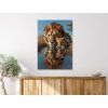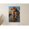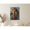 Obraz Levy v odraze zachytáva dojímavý moment, v ktorom dospelý lev a levíča spoločne pijú vodu z tichej kaluže uprostred savany. Ich siluety sa zrkadlia na hladine, čím vzniká obraz plný pokoja, spojenia a prirodzenej krásy. Scéna pôsobí autenticky a nežne – ako tichý rituál života v divočine, kde sila a nevinnosť existujú bok po boku. Obraz je vizuálnym vyjadrením dôvery, ochrany a pokračovania rodu.