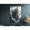 Medveď severu je výnimočný obraz zachytávajúci medveďa v plnej sile uprostred divokej zimnej krajiny. Stojí v obkolesení vysokých ihličnatých stromov, s hlavou zdvihnutou k nebu a otvorenou papuľou – akoby jeho rev rezonoval naprieč horami. V pozadí sa rysujú majestátne, zasnežené vrcholky a dramatická obloha s mrakmi podčiarkuje atmosféru nespútaného prírodného sveta. Tento výjav stelesňuje silu, rešpekt a čistú divočinu.
