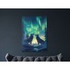 Polárny duet vlkov je čarovná zimná scéna zachytávajúca dvojicu vlkov, ktorí spoločne vyjú pod tancom polárnej žiary. Ich postavy sa vynímajú v bielej krajine medzi zasneženými borovicami, zatiaľ čo nad nimi žiari zelenomodrá obloha plná pohybu a svetla. Obraz stelesňuje spojenie prírody, divokej komunikácie a tichej krásy severu.