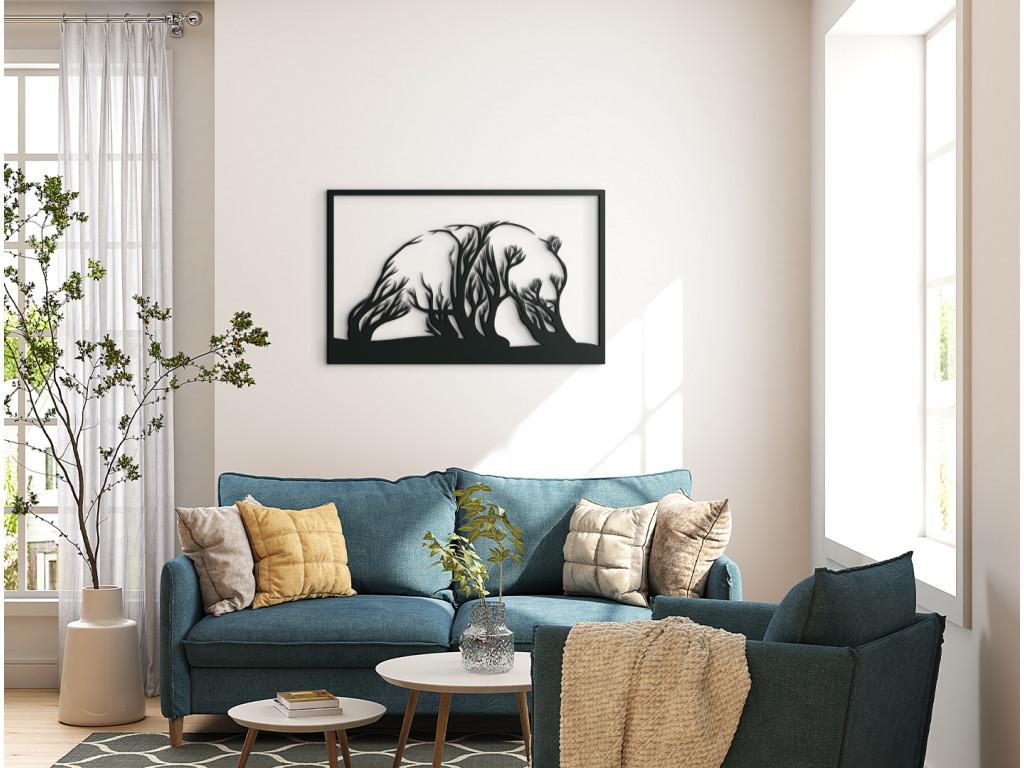Hľadáte nejaký netradičný doplnok do interiéru, ktorý by vám skrášlil prázdne steny? V tom prípade sa vám určite zapáči drevená nálepka na stenu s motívom stromov, ktorých koruny sa navzájom spájajú do podoby medveďa. Originálny a nápaditý dizajn sa hodí predovšetkým do moderných interiérov.