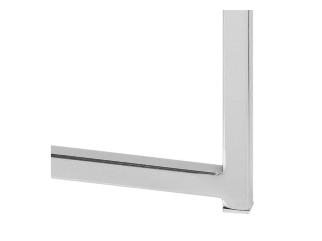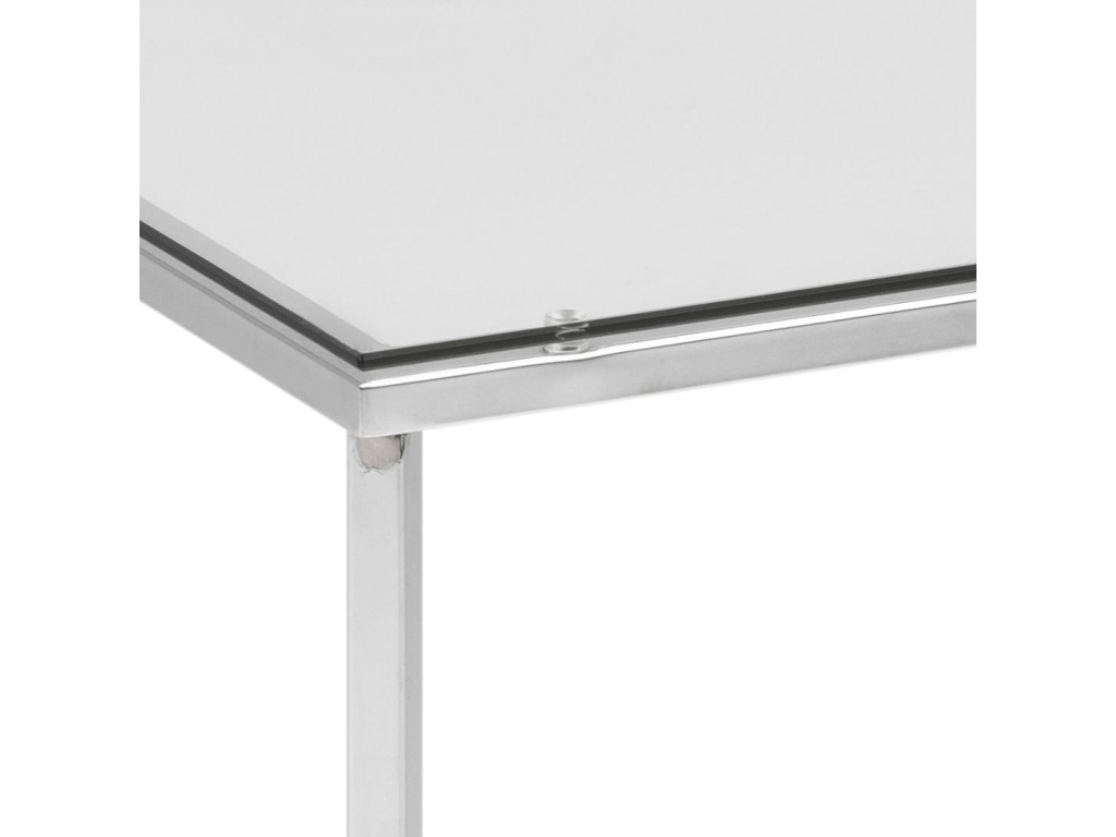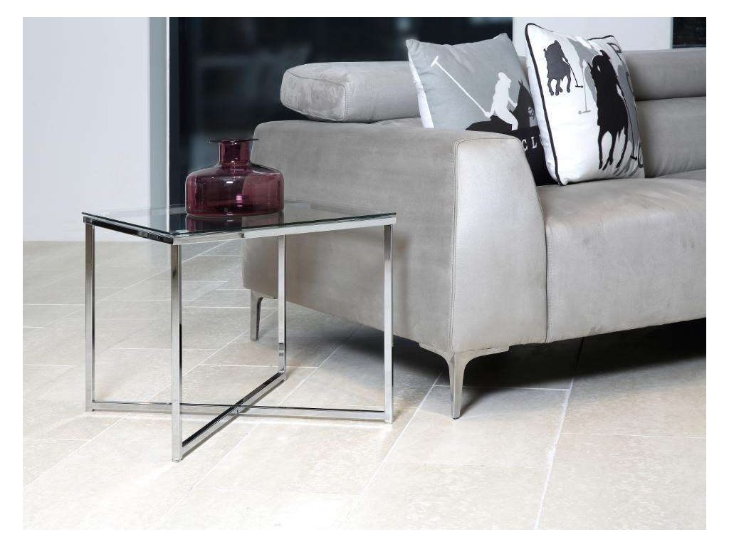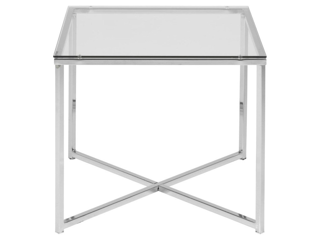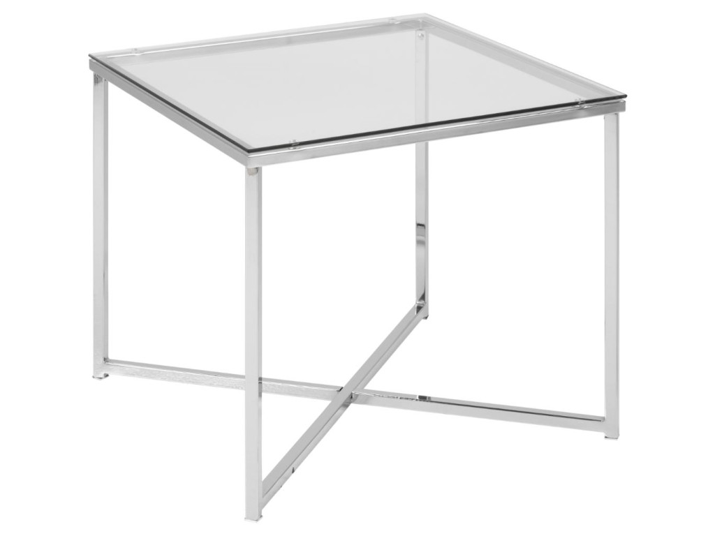 Vneste do svojho interiéru dávku lesku a ľahkosti. Tento štvorcový stolík so sklenenou doskou z číreho tvrdeného skla a podnožou z lesklej chrómovej ocele sa vďaka svojmu krížovému prevedeniu stane výrazným a pritom jemným doplnkom obývačky, predsiene či spálne. Ideálny na dekorácie, kvetiny alebo lampu, zároveň pôsobí ako praktický a estetický akcent.