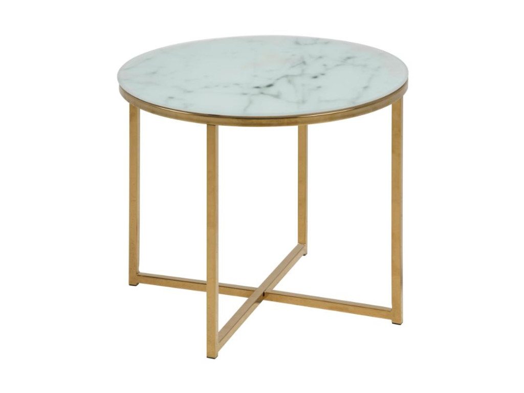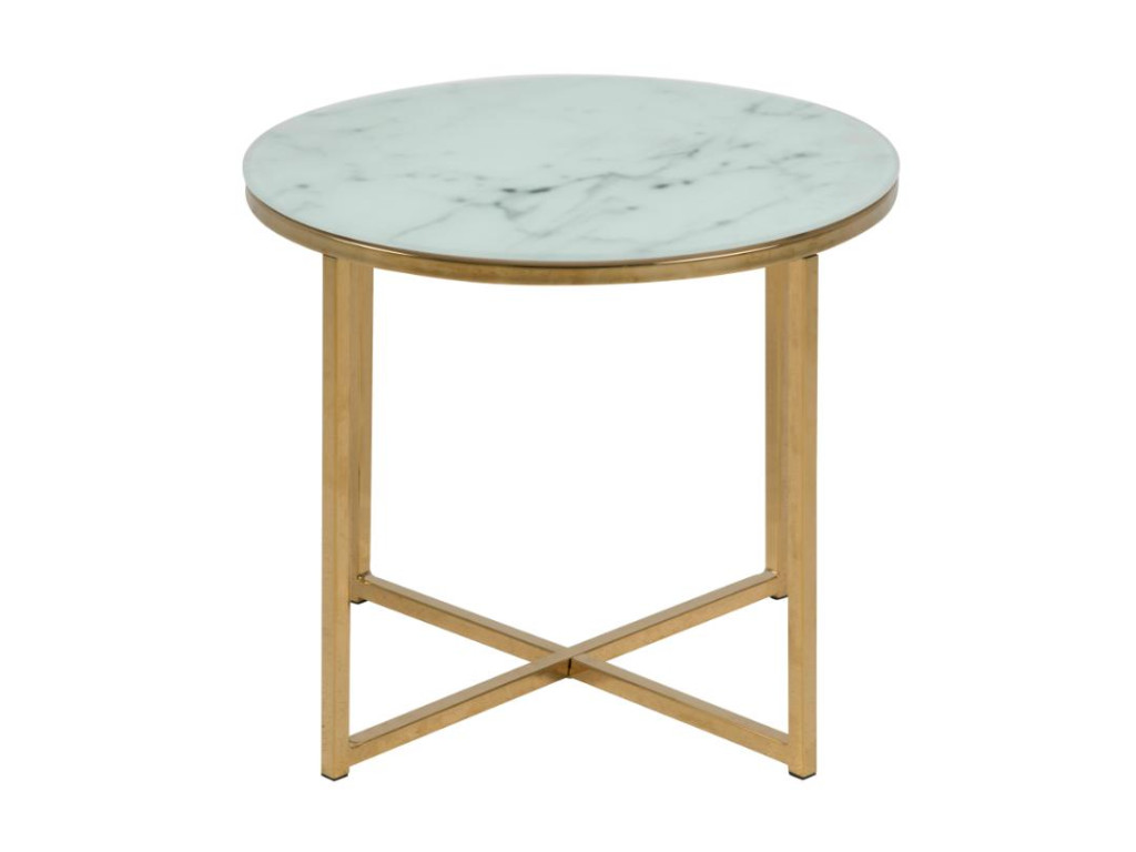 Okrúhly príručný stolík Alisma - biely mramor / zlatá
